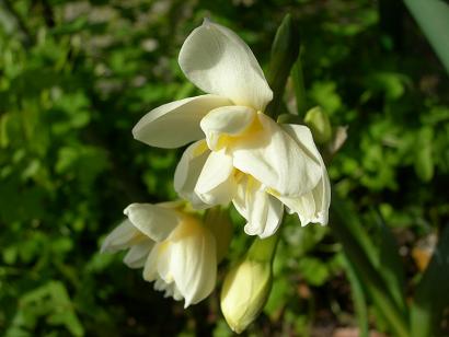 昨年いただいた水仙がようやく咲きました。花の形珍しいでしょう?なんという種類でしょう?八重とでも言うのでしょうか?花びらがたくさんで中央が黄色みを帯びてます。下向きにひっそりと咲いてる姿が愛らしいですね。我が家で一番日当たりがよい駐車場横。今、においスミレ「はかた紫」とオキザリスと一緒に咲いてます。毎日寒いですね。3月に入ればまんさくや辛夷が咲き始めます。春が早くこないかな~~"^_^"