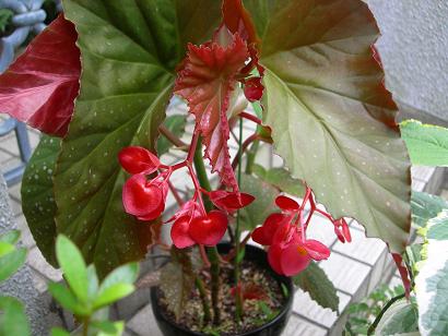 20年以上も前だったでしょうか?木立性ベゴニアが流行ったんです。趣味の園芸に載ってる、真っ白い花が咲く『ミセス橋本』に憧れて。。。お店では、白はなくて赤を買ったけれど、一度も花を咲かせる事が出来なかった・・・あれからしばらくして…引越して記憶から消えてた木立性ベゴニア。日曜にグループの広報の方のお宅に伺ったら、あったんです。『葵』を見せてくださって、庭に出たときに見つけました。『あっ、木立性ベゴニア。綺麗ですね~』『要る?』 『要ります!!』 と、頂いてきました(*^▽^*)決して、初めにくださいと言った訳ではないですよ。今、門扉の外に飾ってます。とても嬉しいです。日当たりのよいところに置いておこう。次の花咲かせられるかな?