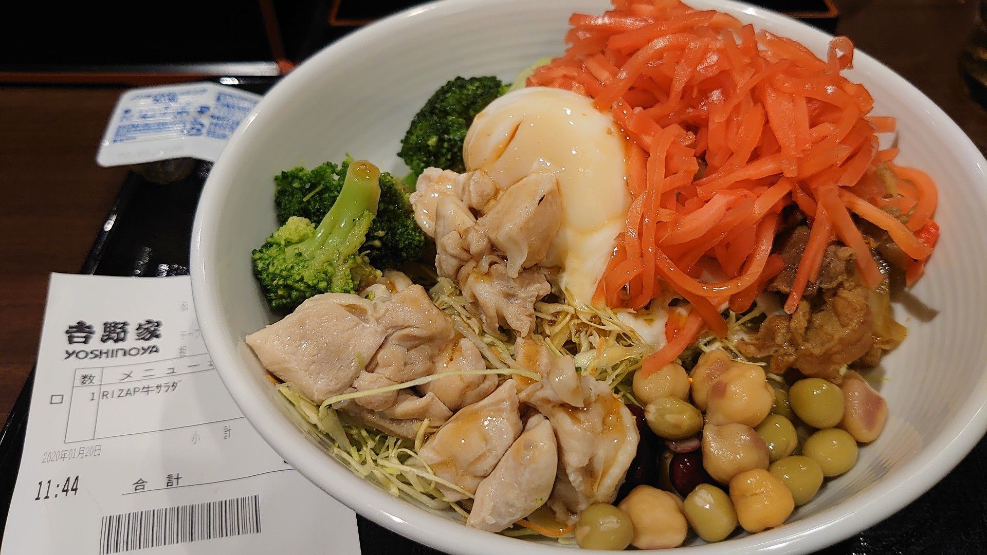 今日のランチは、東京駅八重洲地下街にある「吉野家」で、「ライザップ牛サラダ」をいただきました。