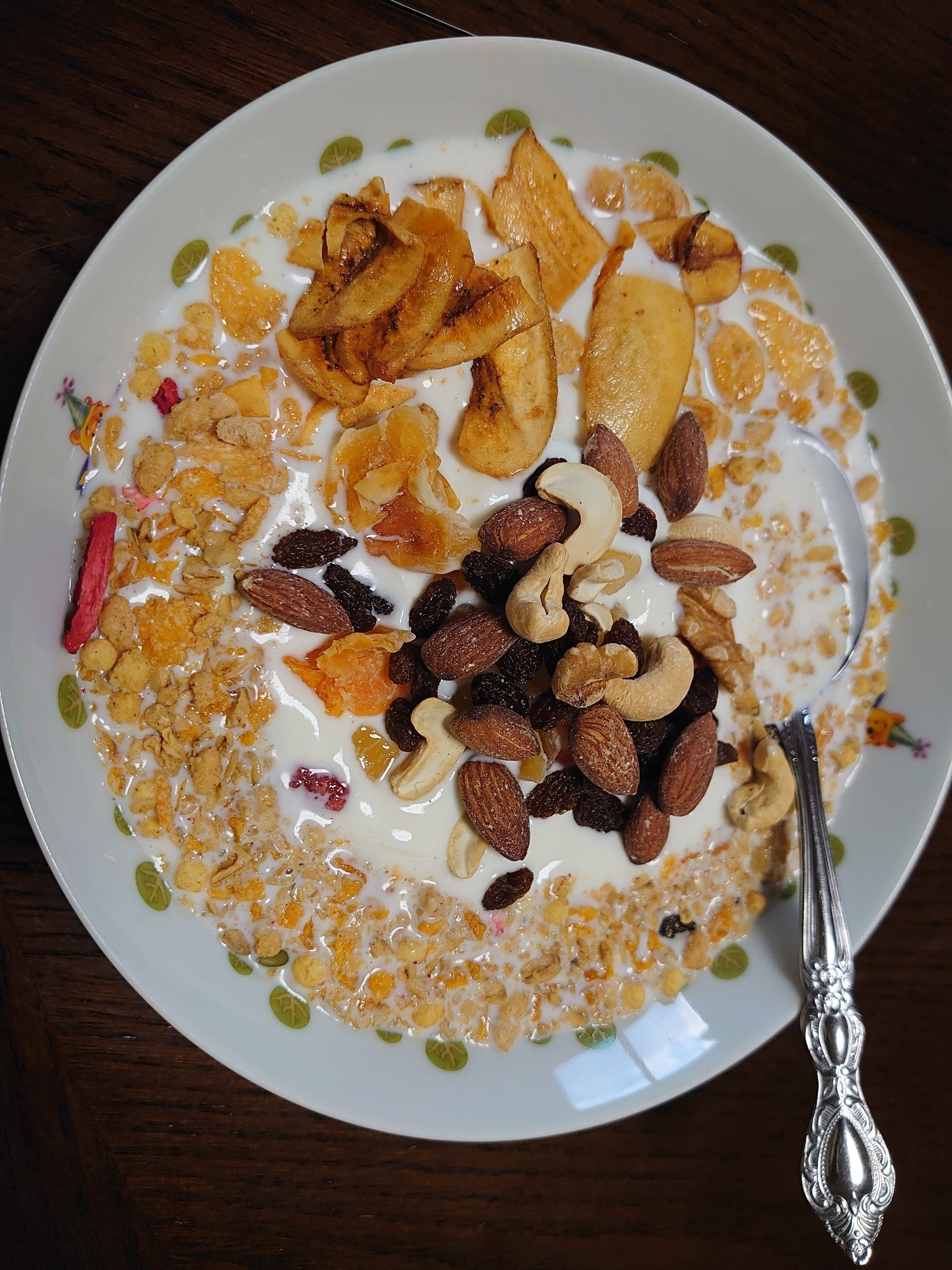 今日の我が家の夕飯は、シリアルヨーグルト。