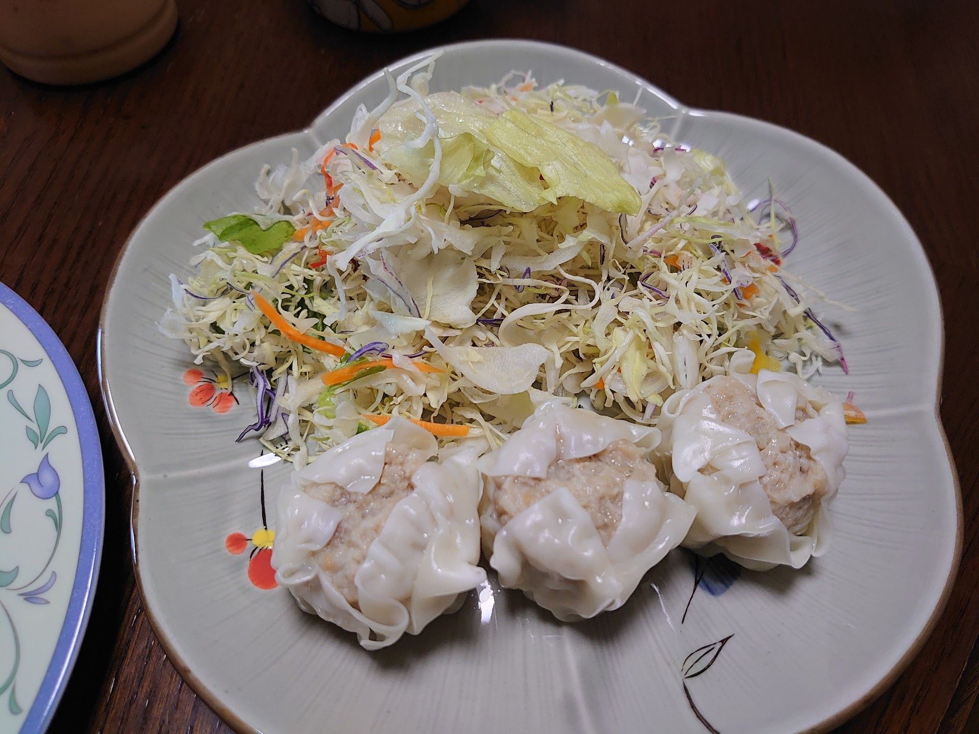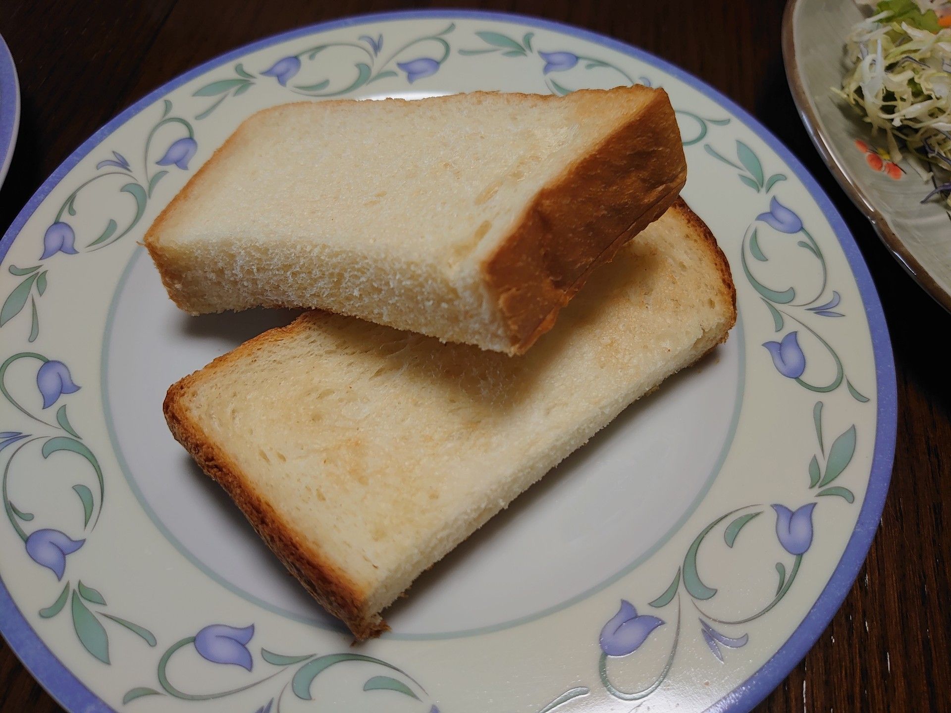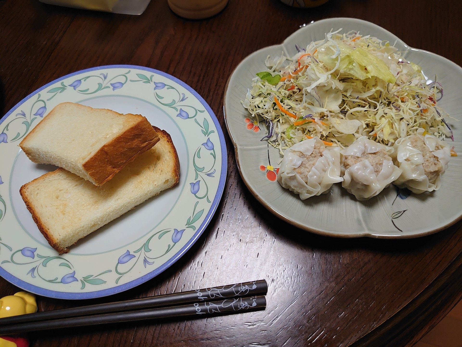 今朝の我が家の朝食は、シュウマイと食パン(「俺のベーカリー」の「和」とOKストアの「ホテル食パン」)。