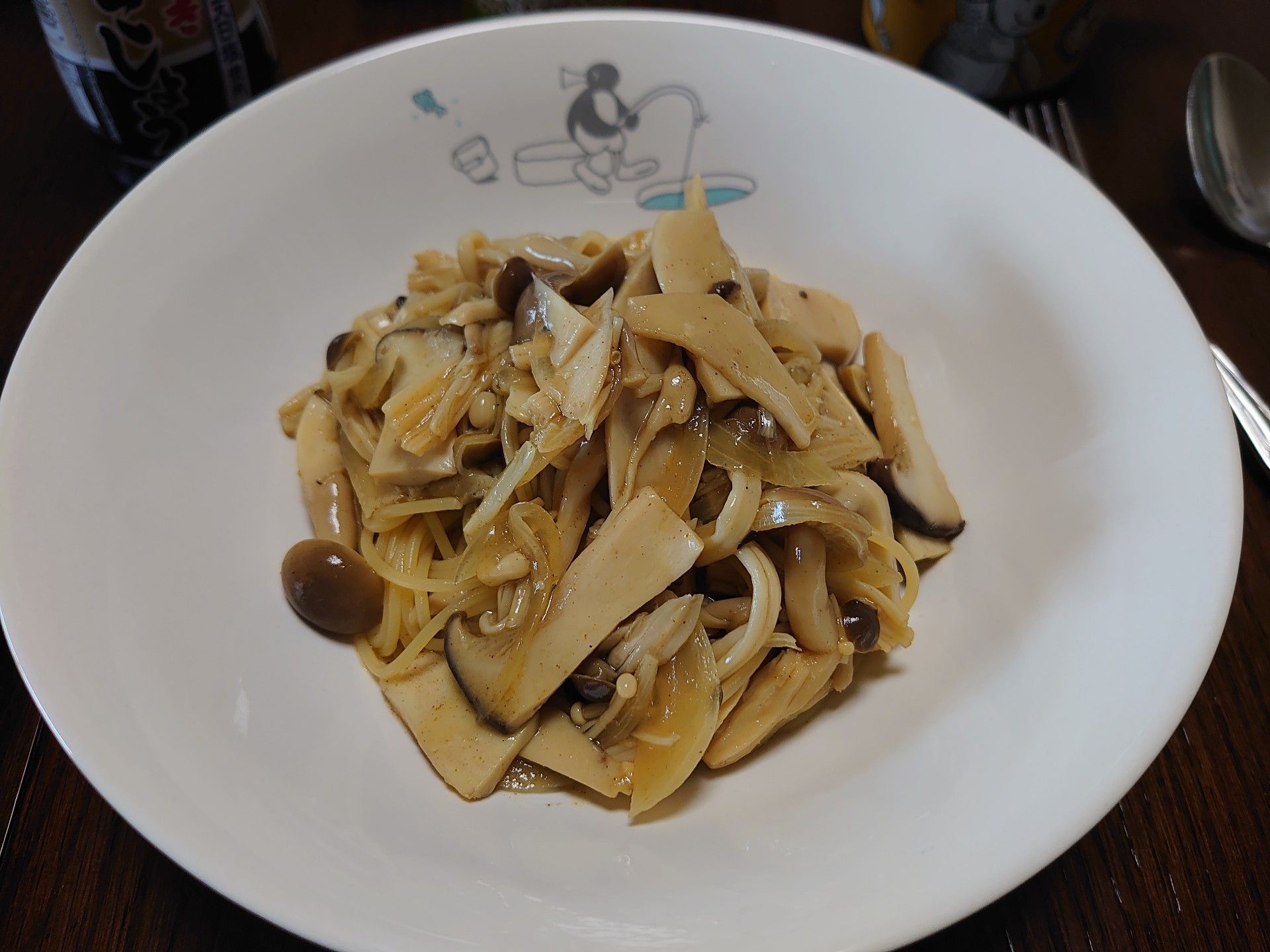 今日の我が家のランチは、手作りのキノコのマリネを使ったパスタ。デザートは、バナナ。