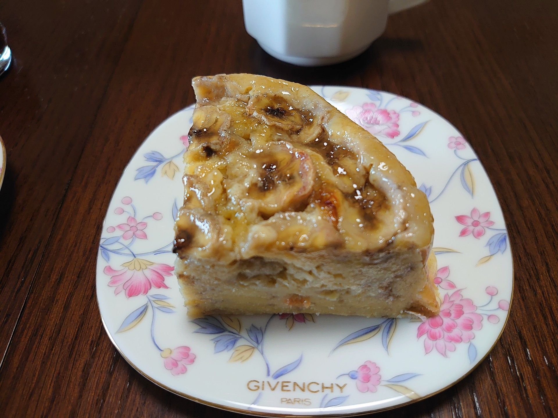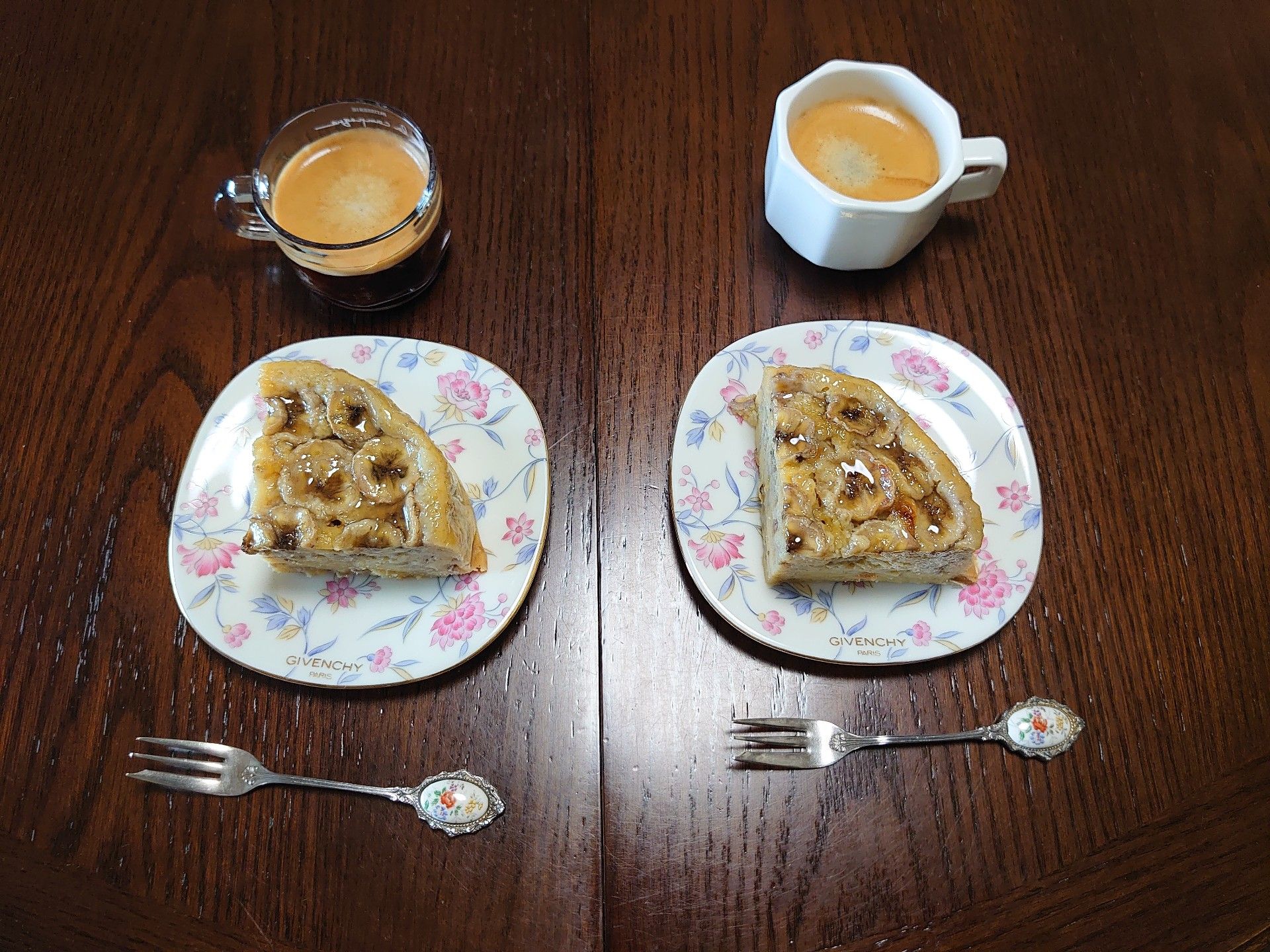 今日の午後のおやつは、手作りの「バナナブリュレケーキ」とネスプレッソで淹れたコーヒー。