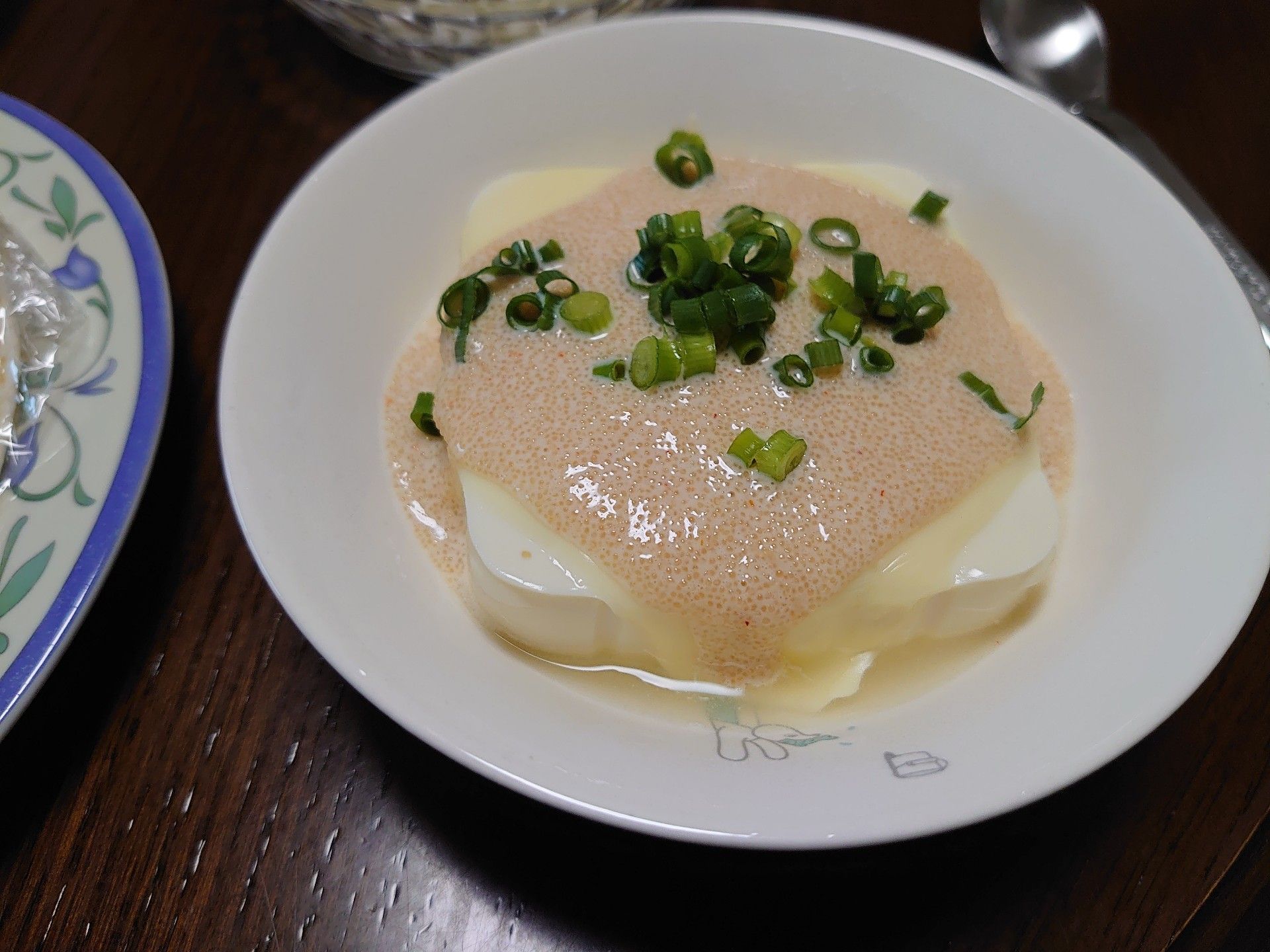 今日の我が家の夕飯は、明太子マヨネーズ冷奴とトルティーヤ。
