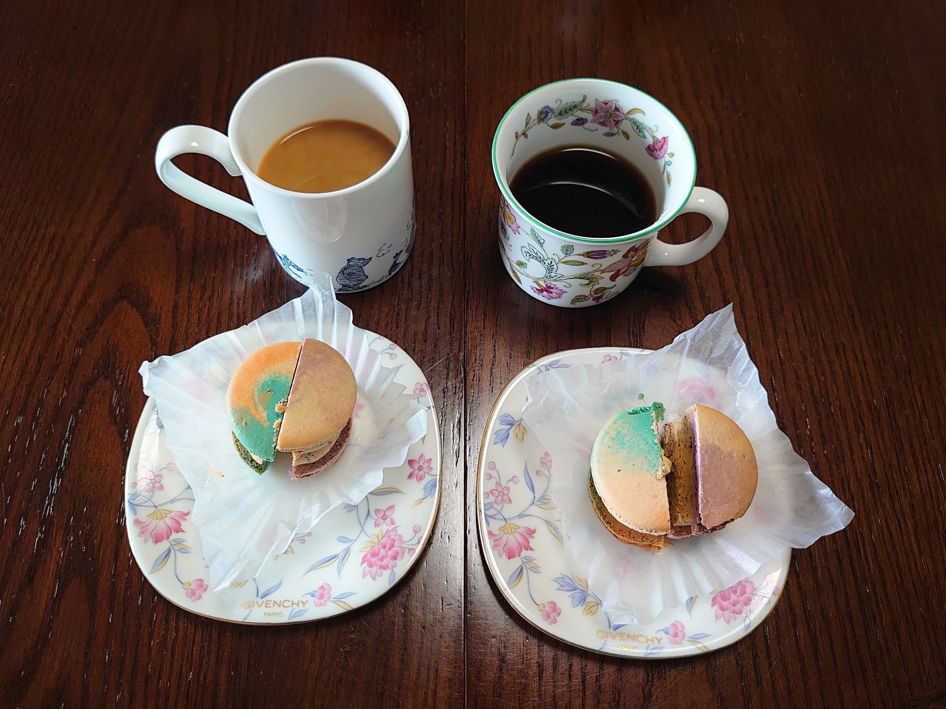 今日の午後のおやつは、「シュガーフォレスト」のトゥンカロン(韓国風マカロン)とドリップコーヒー(マキシム)。