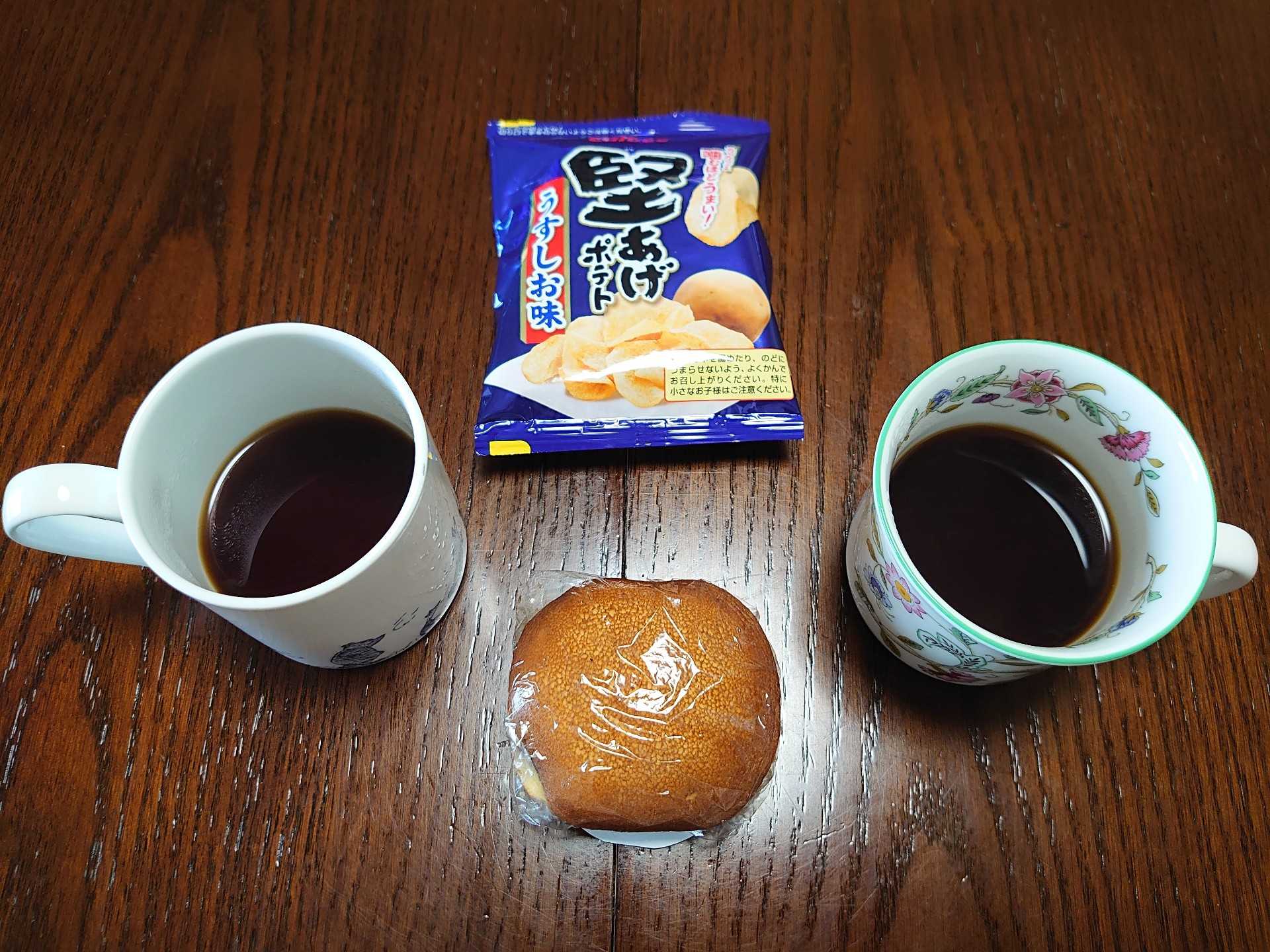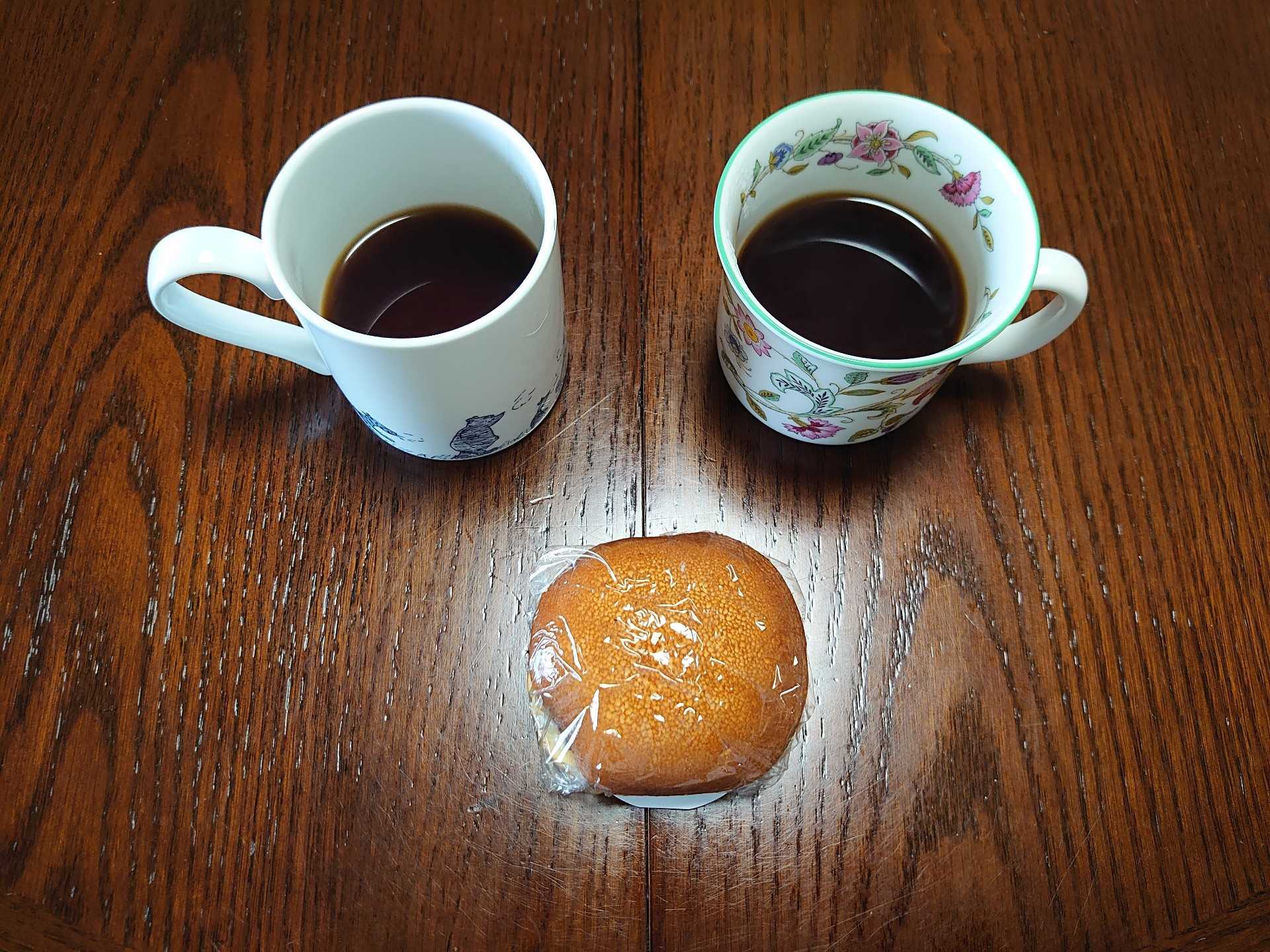 今日の午後のおやつは、ダイソーで買った「どら焼き」とドリップコーヒー(ドンキホーテ)。