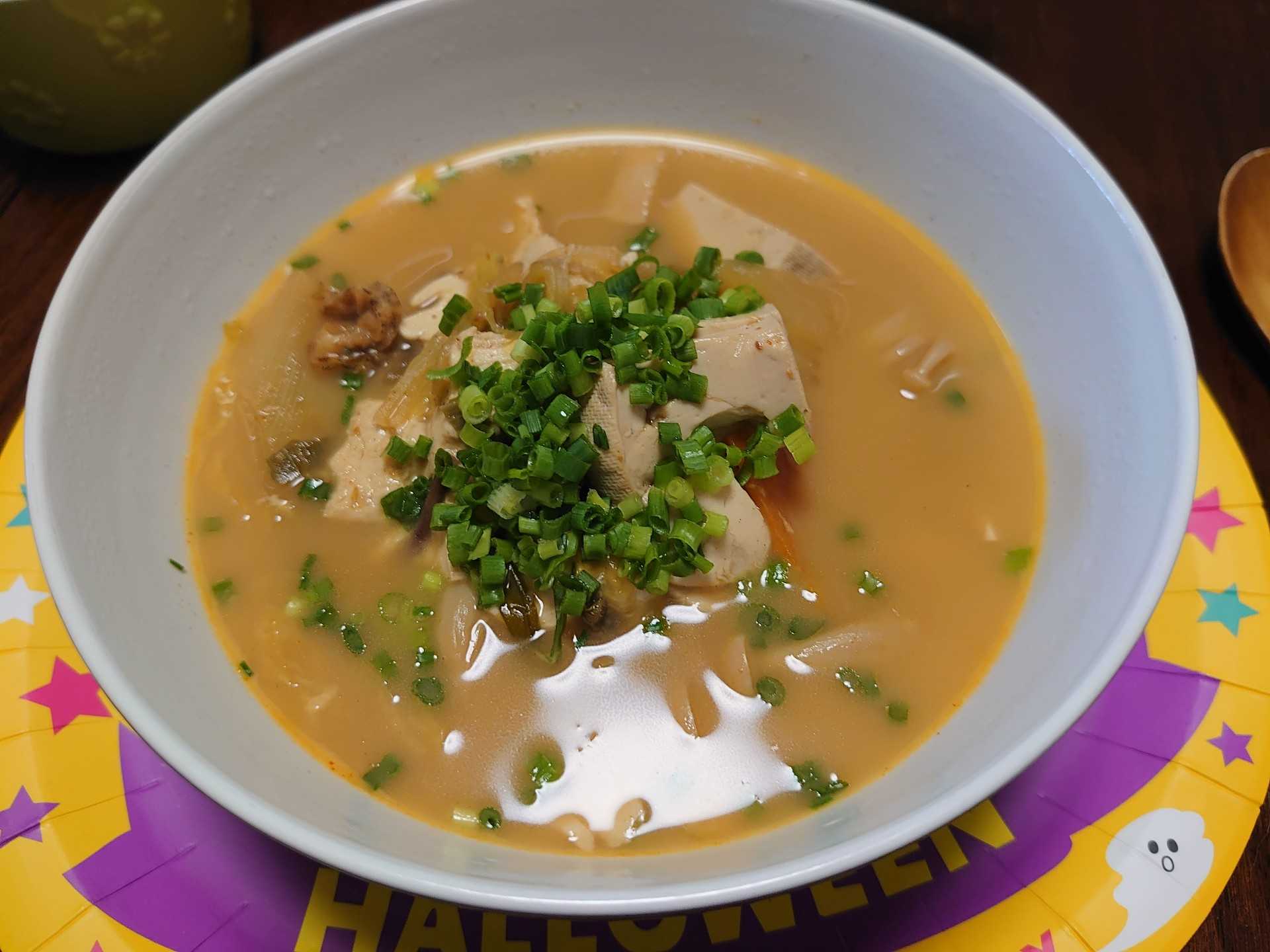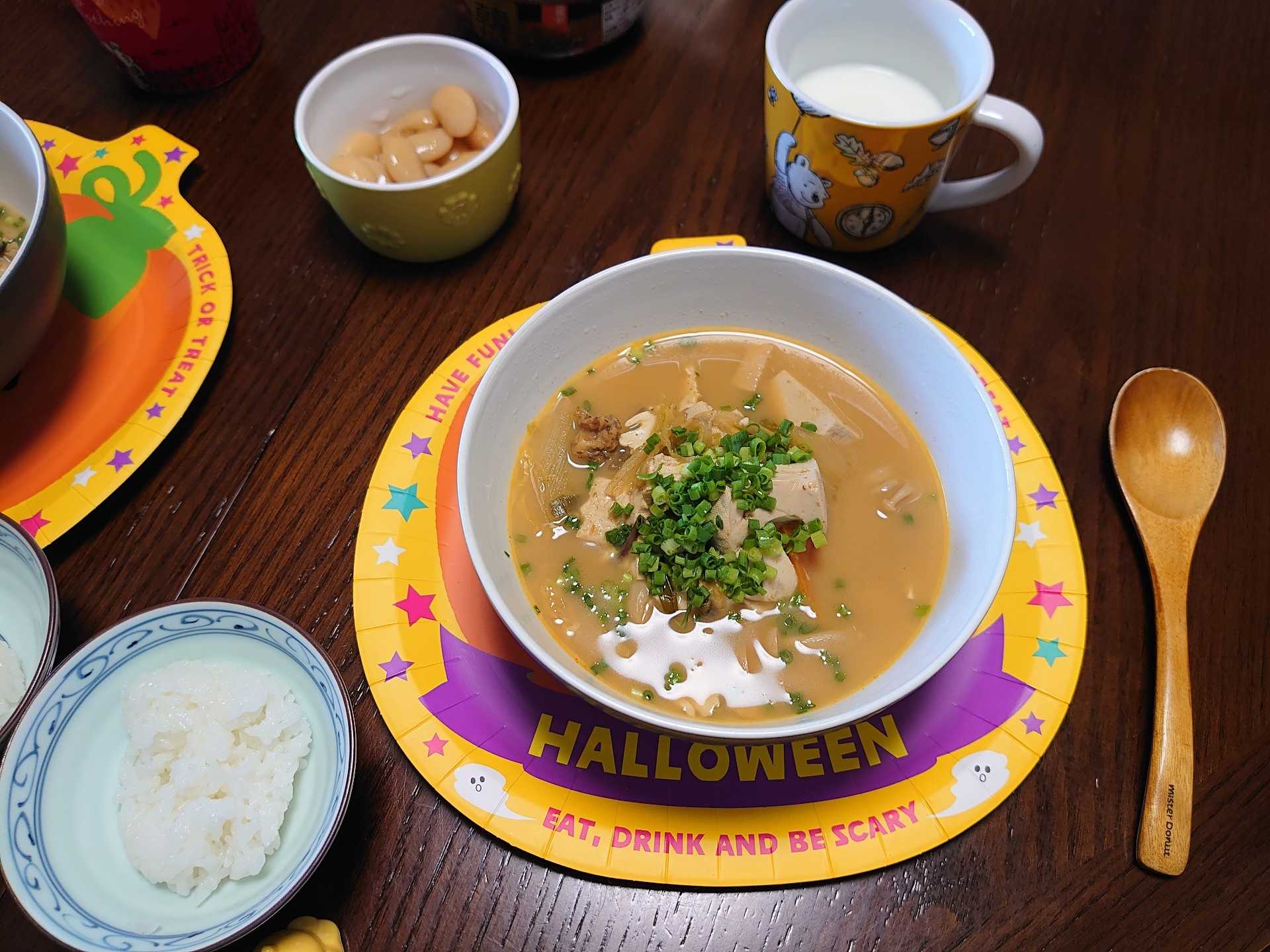 今朝の我が家の朝食は、昨日の残りの「味噌チゲ」。
