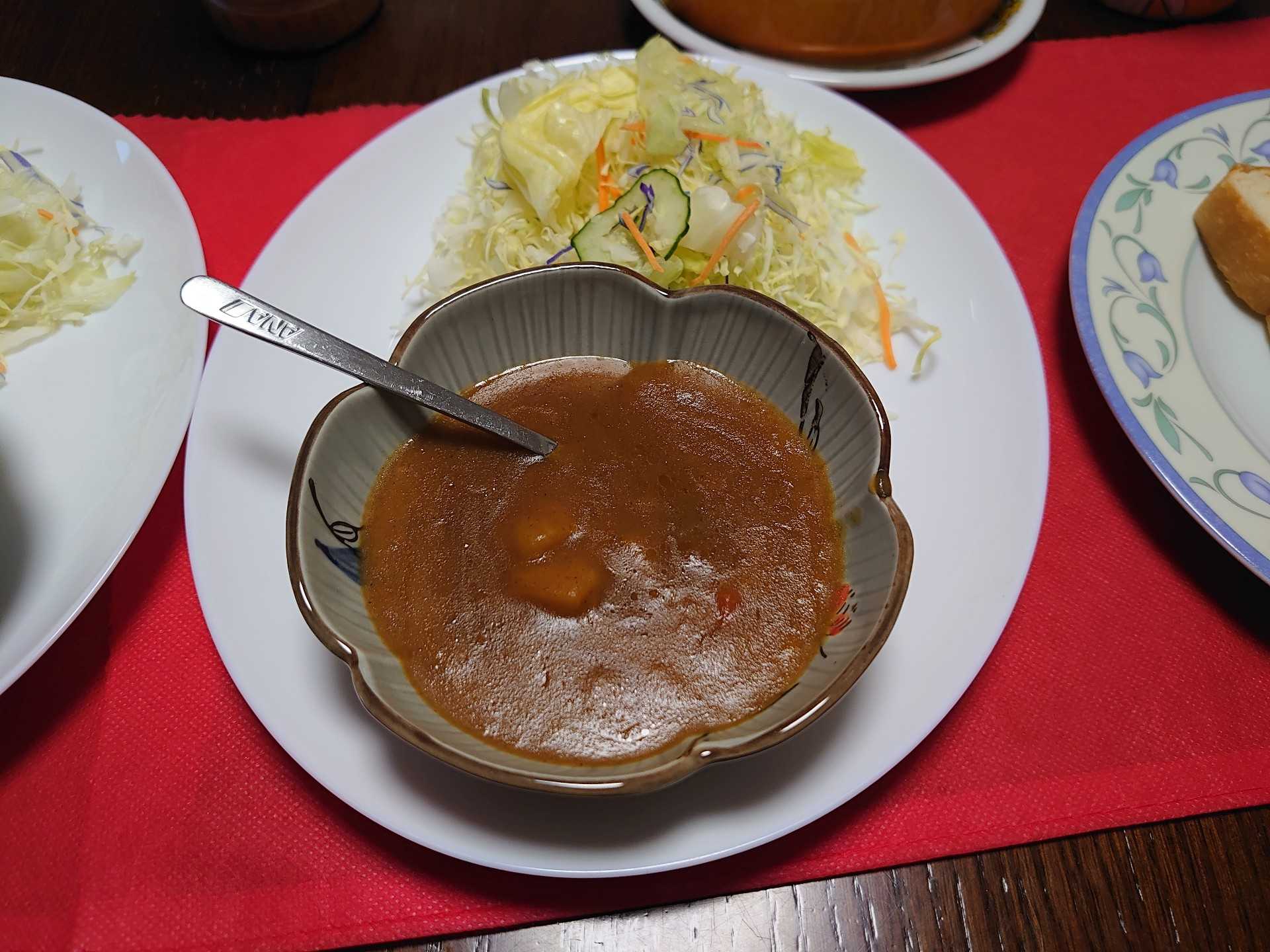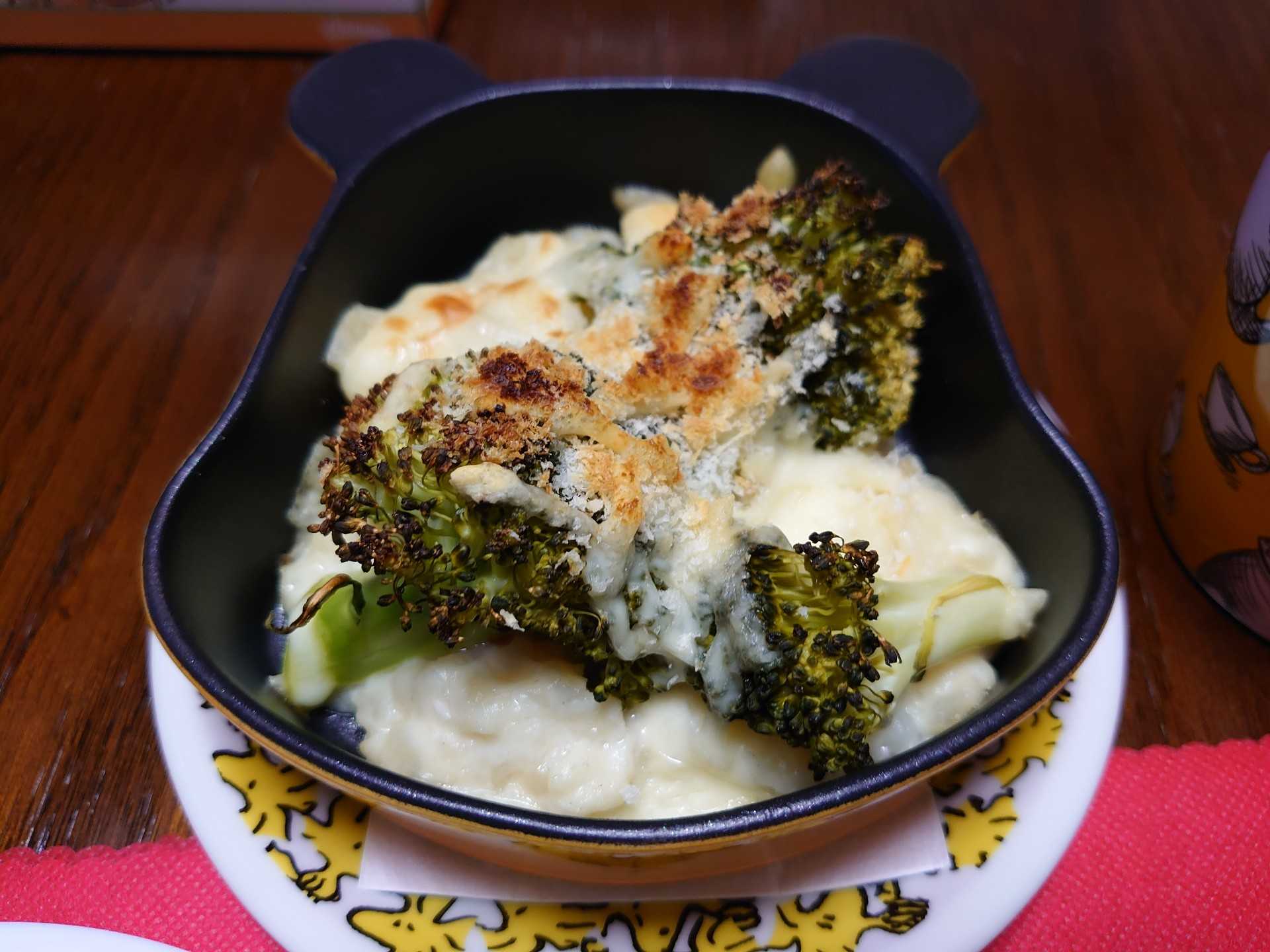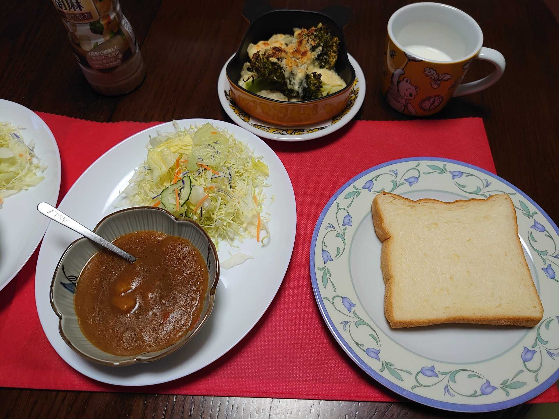 今朝の我が家の朝食は、ローソンの「カレー」とブロッコリーの「グラタン」。