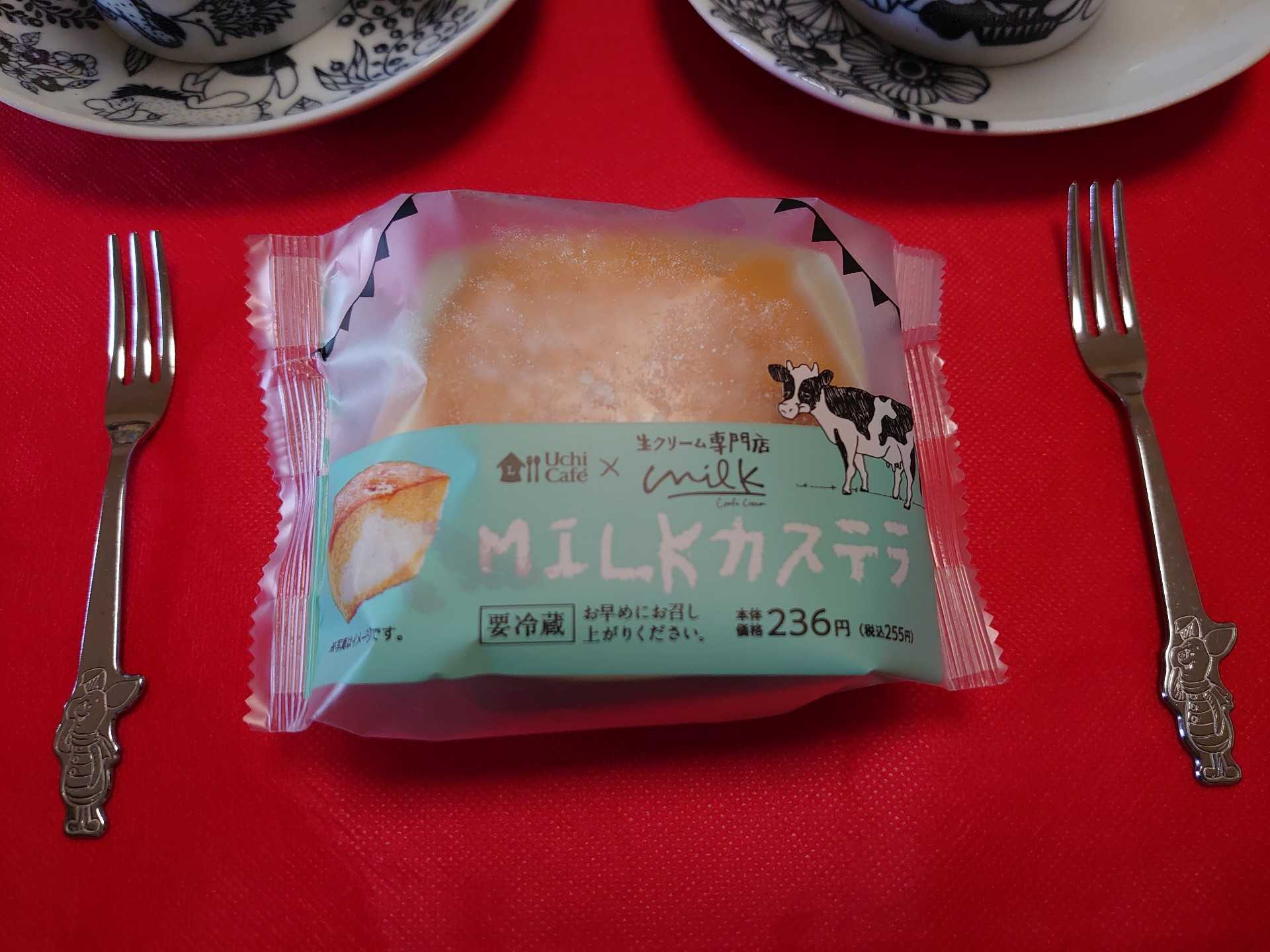 今日の午前中のおやつは、ローソンとMilkのコラボの「カステラ」。