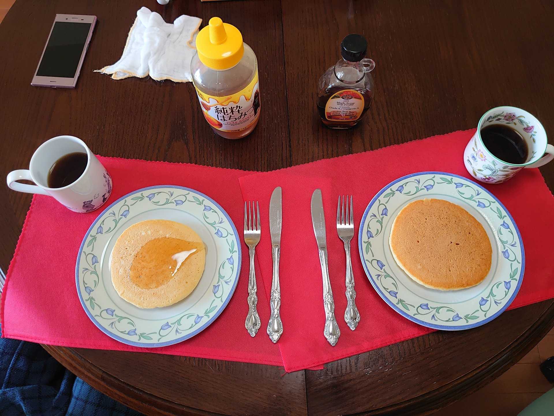 今日の午後のおやつは、ランチの時に焼いたホットケーキとドリップコーヒー。