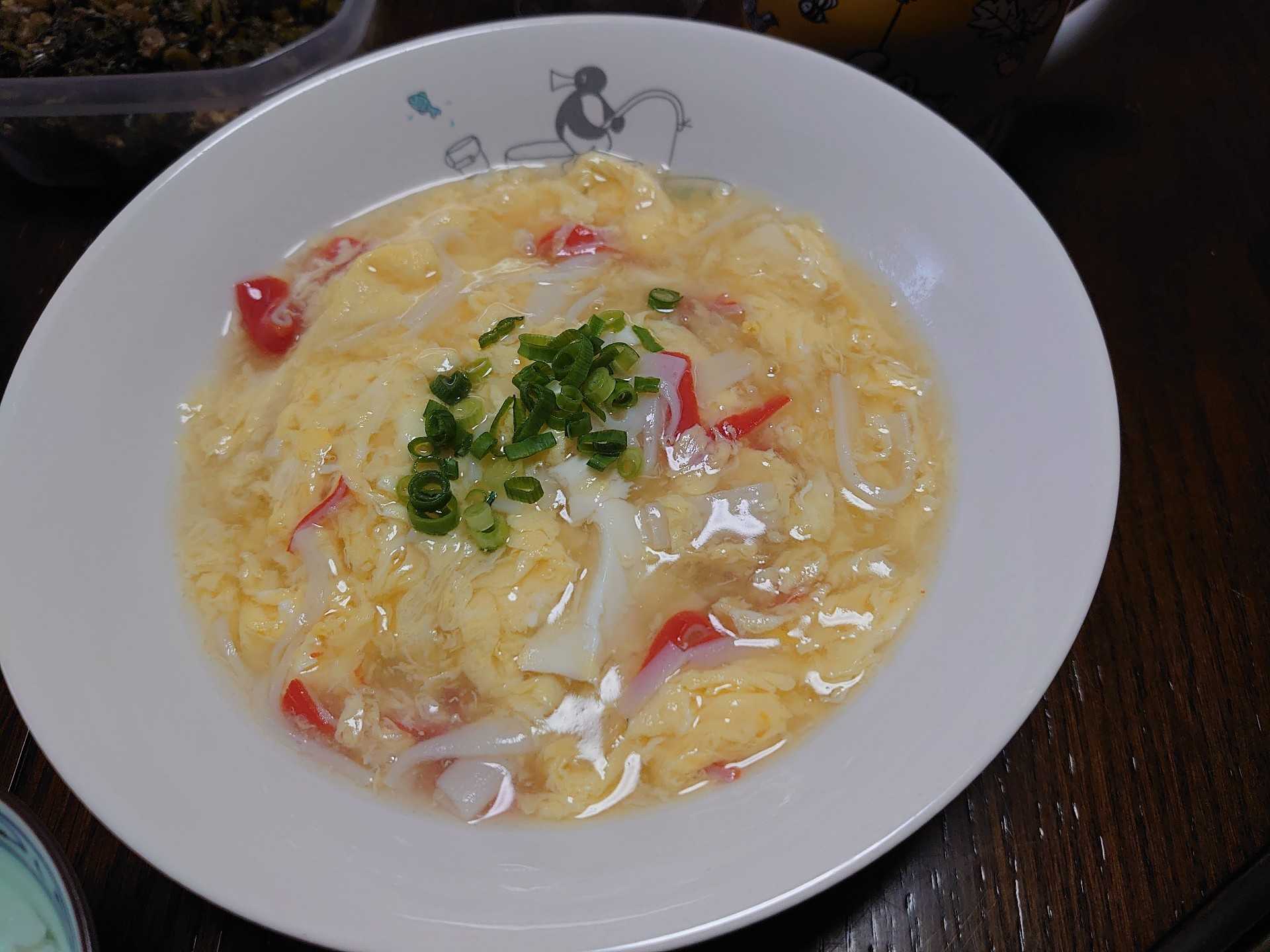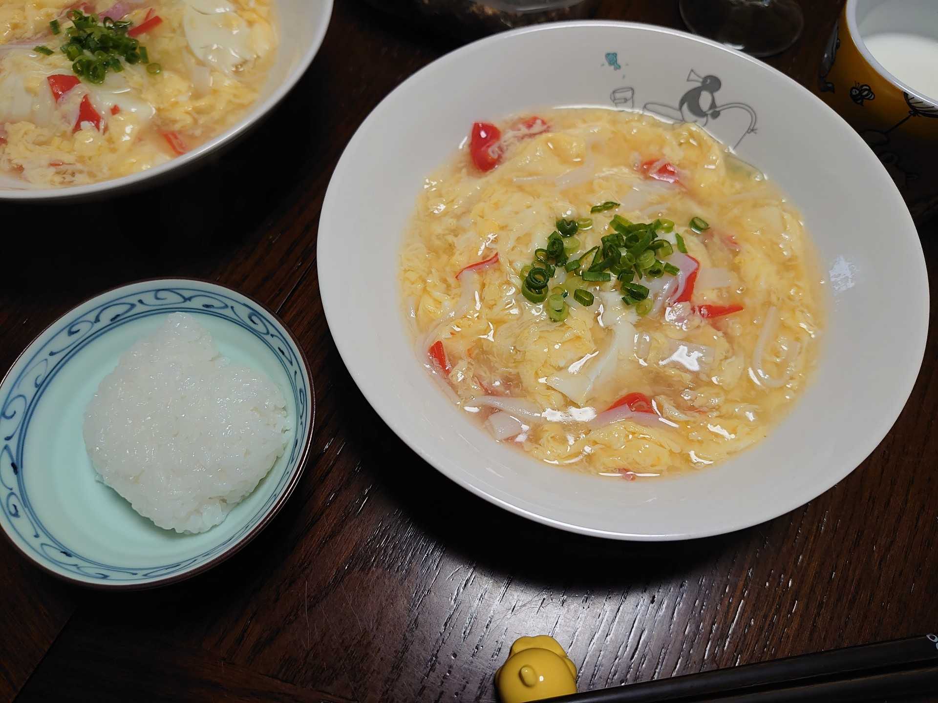 今日の我が家の夕飯は、カニかま餡掛け豆腐。