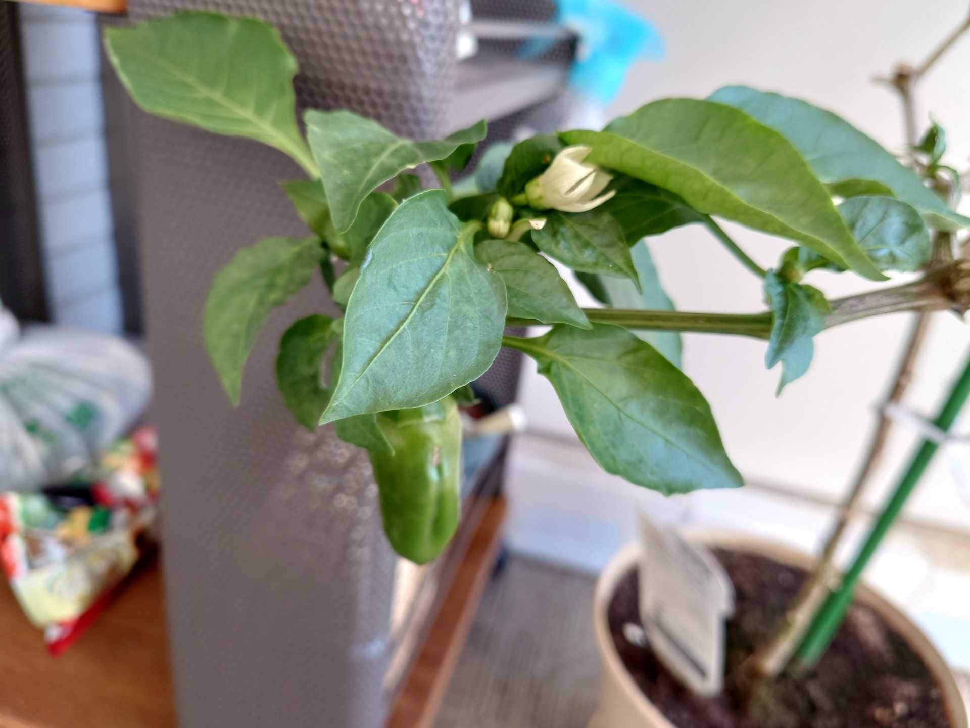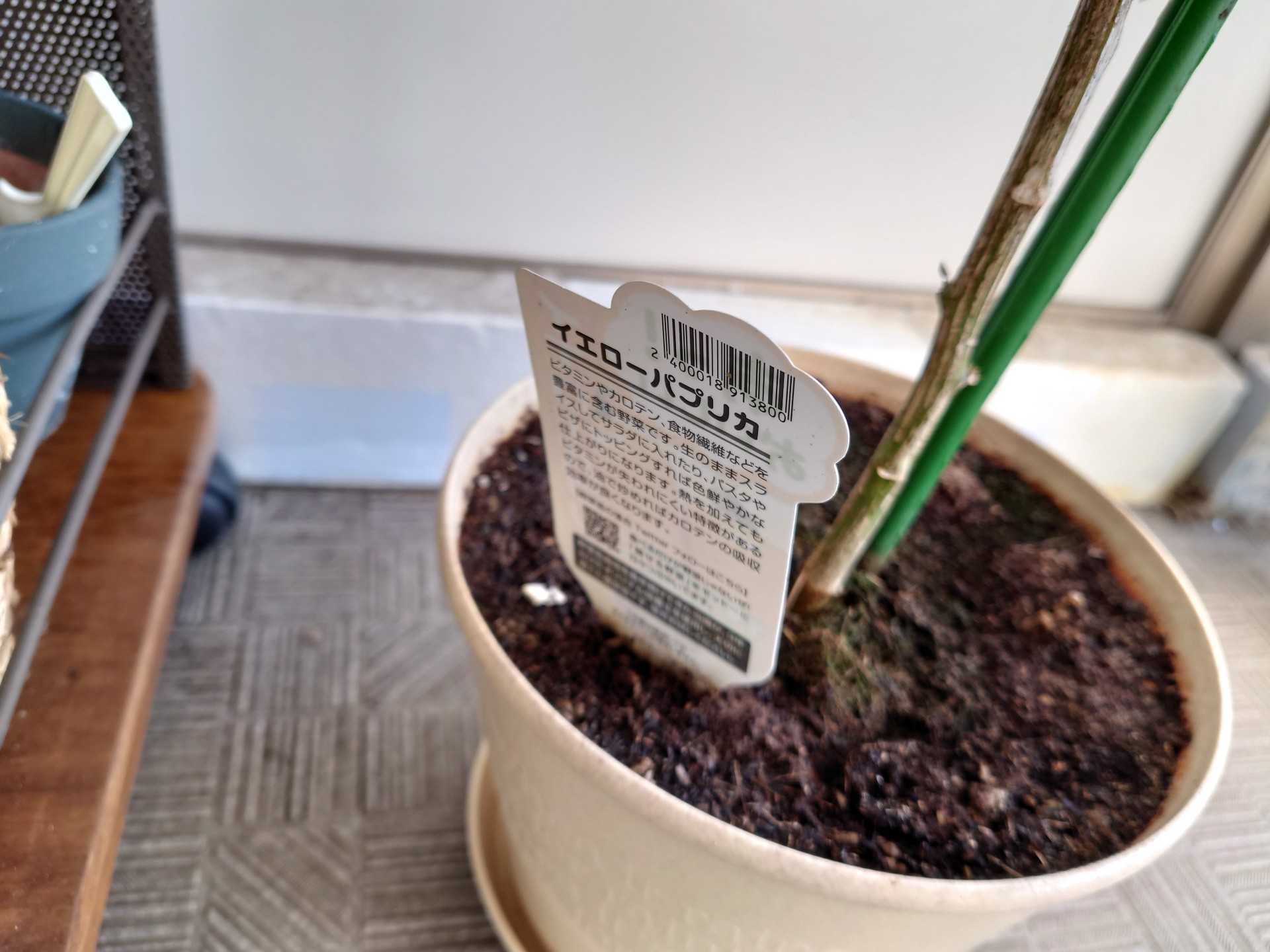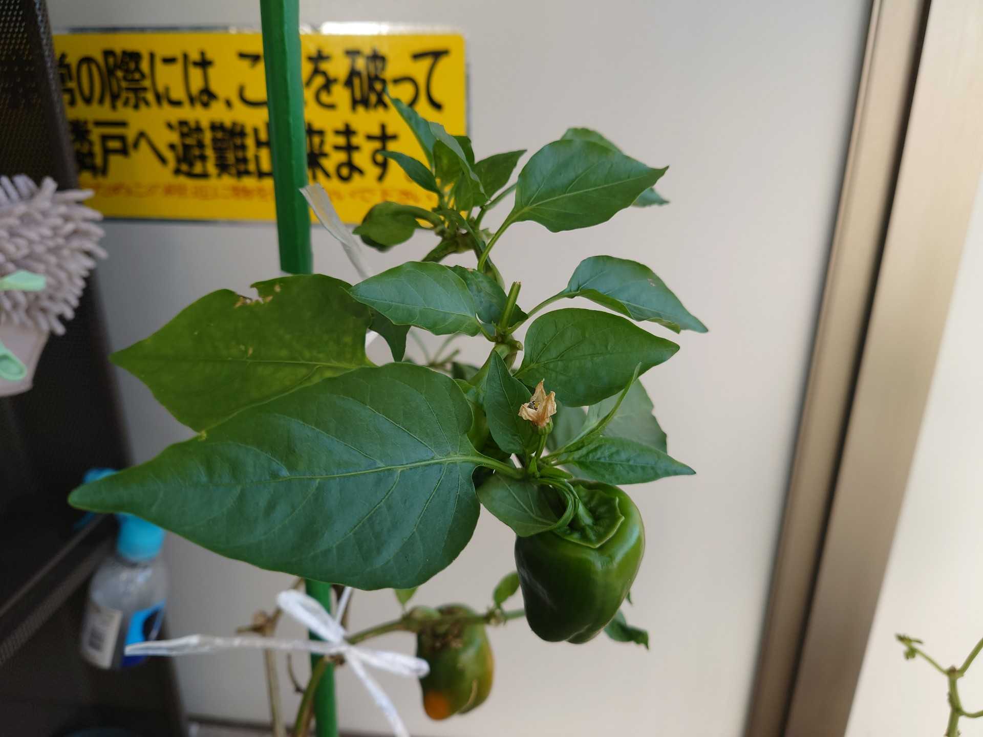 黄パプリカの中位の実と花。