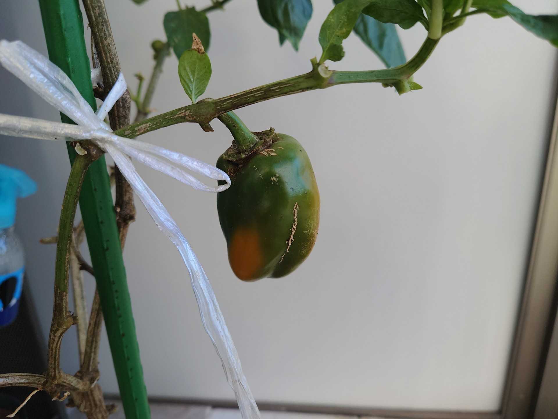 黄パプリカの大きな実。下の方から少し黄色みが出て来ました。
