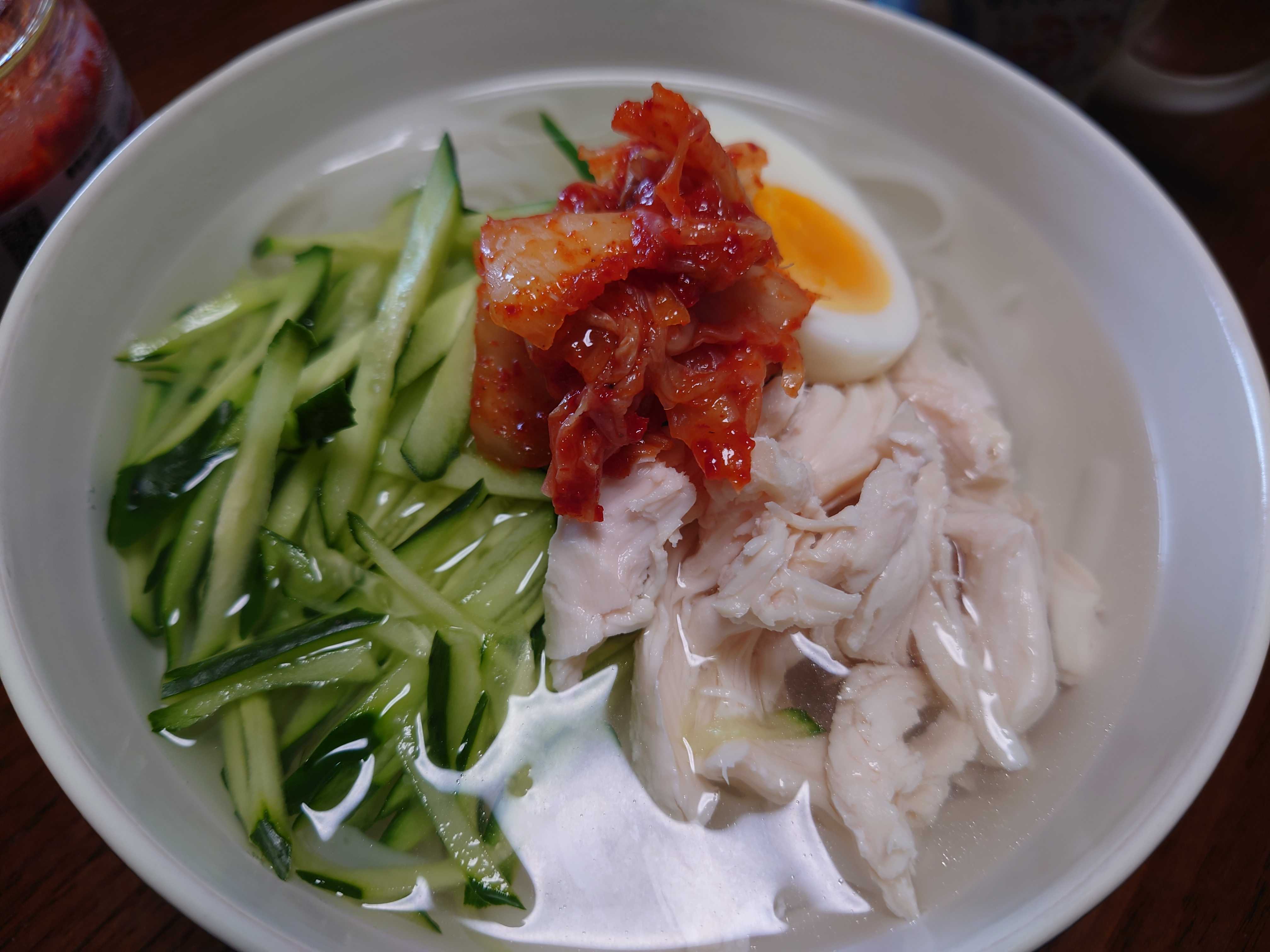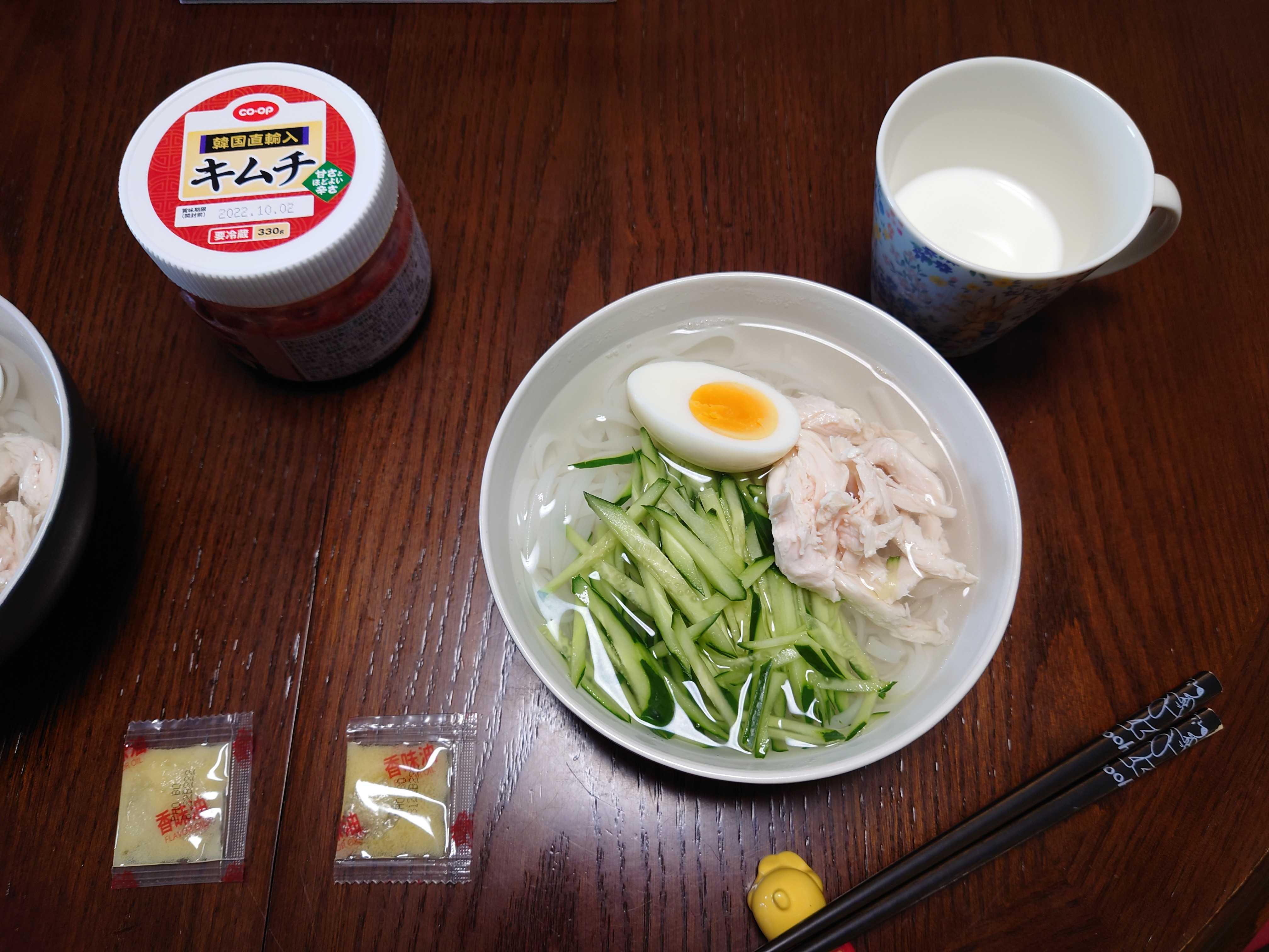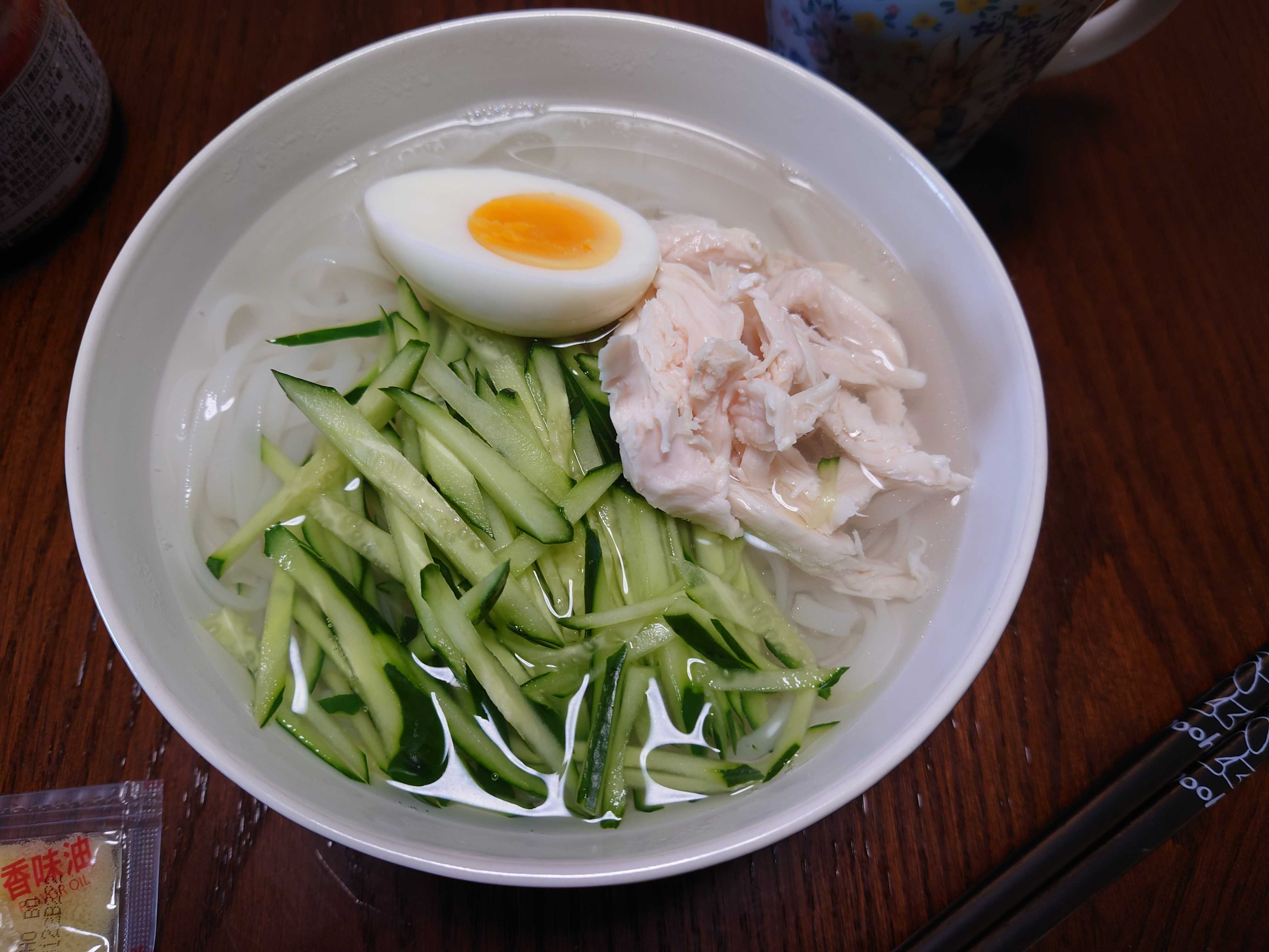鶏のささ身、きゅうり、ゆで卵を載せて。