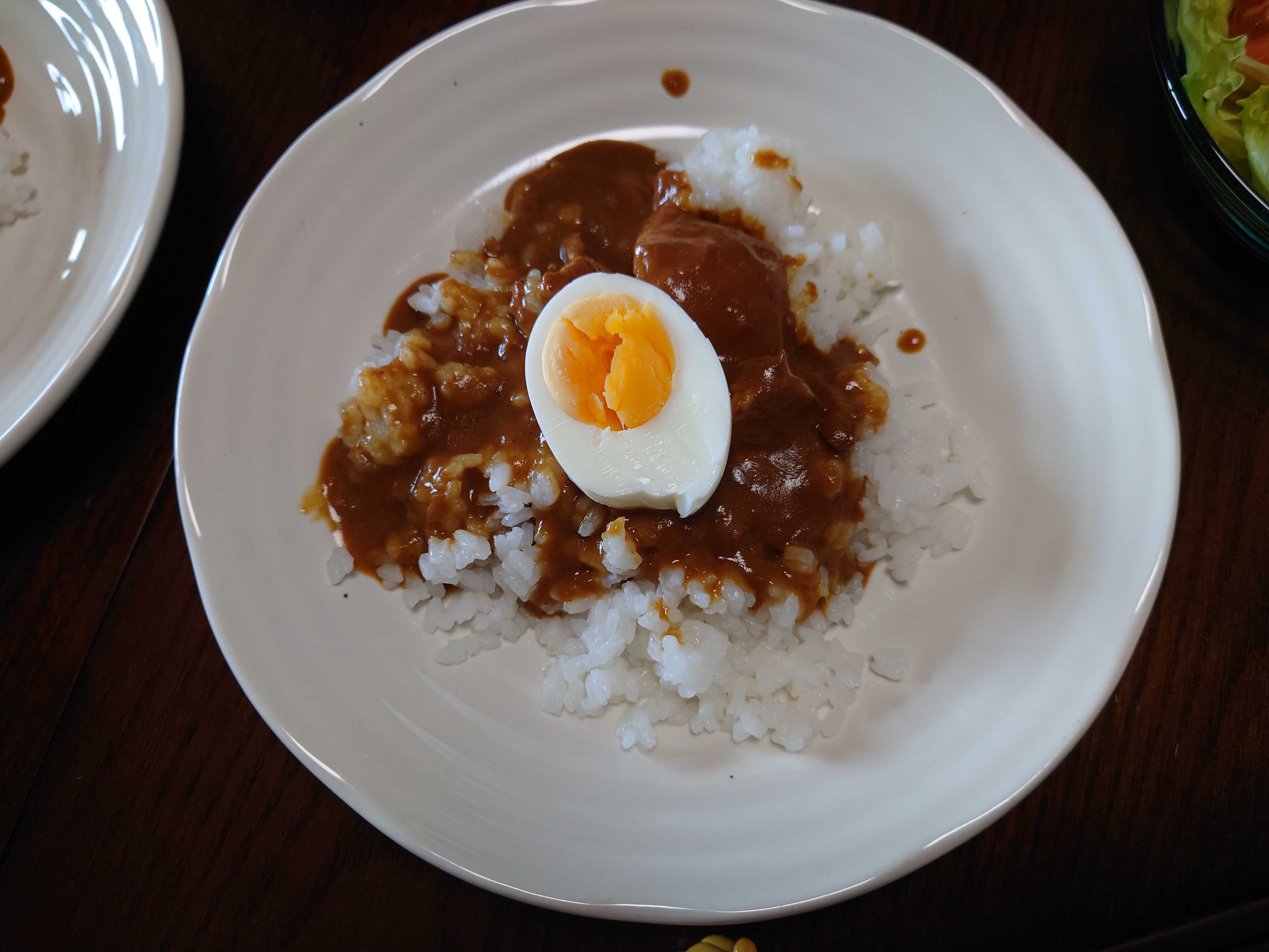 今日の我が家のランチは、レトルトの「ポークカレー」とトマトのサラダ。