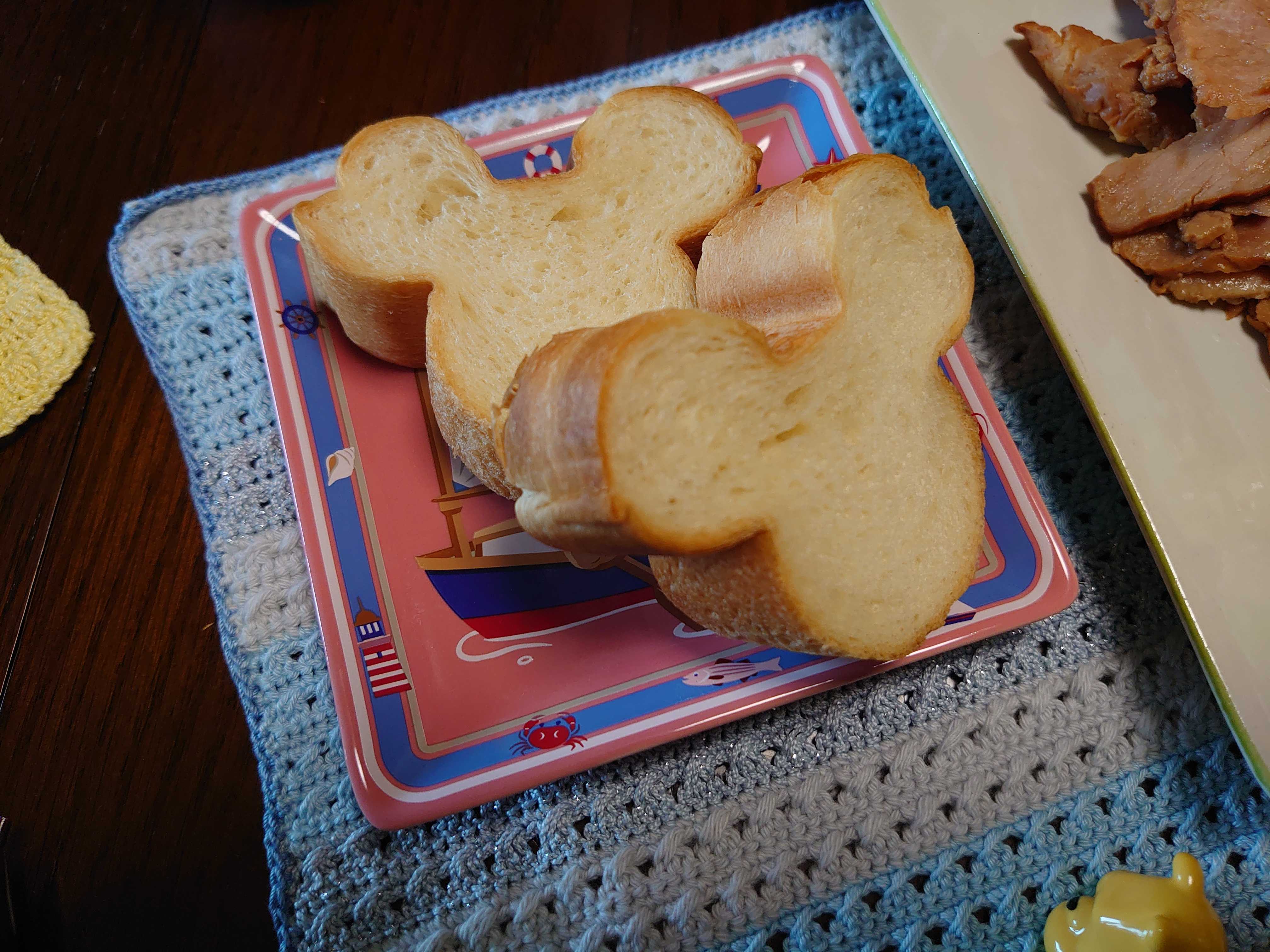 マンマ・ビスコッティで買った「ミッキーのロングパン」を切ったもの。