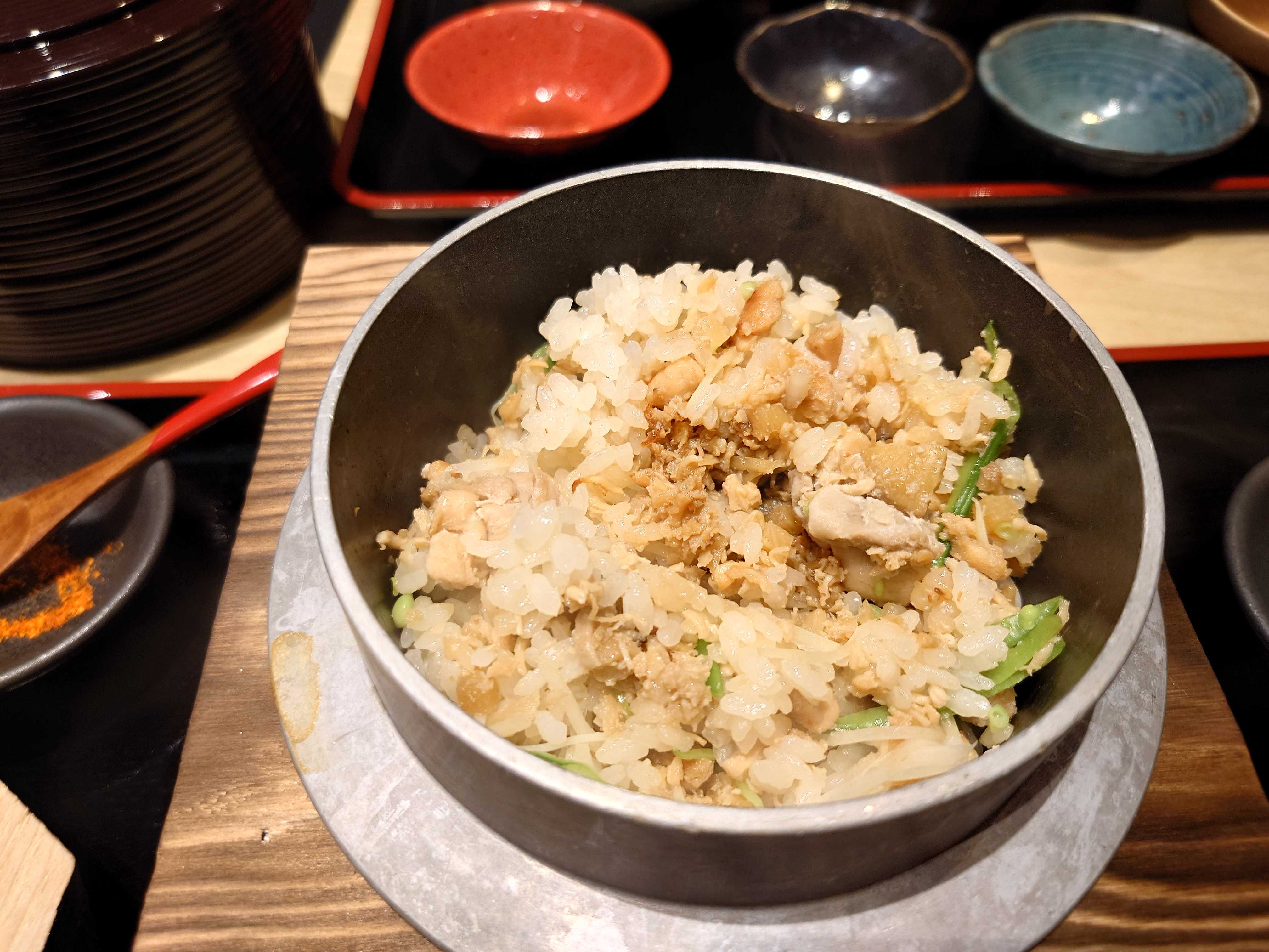 鶏釜飯。7月中は、定食類は半額ということで、行って見ました。