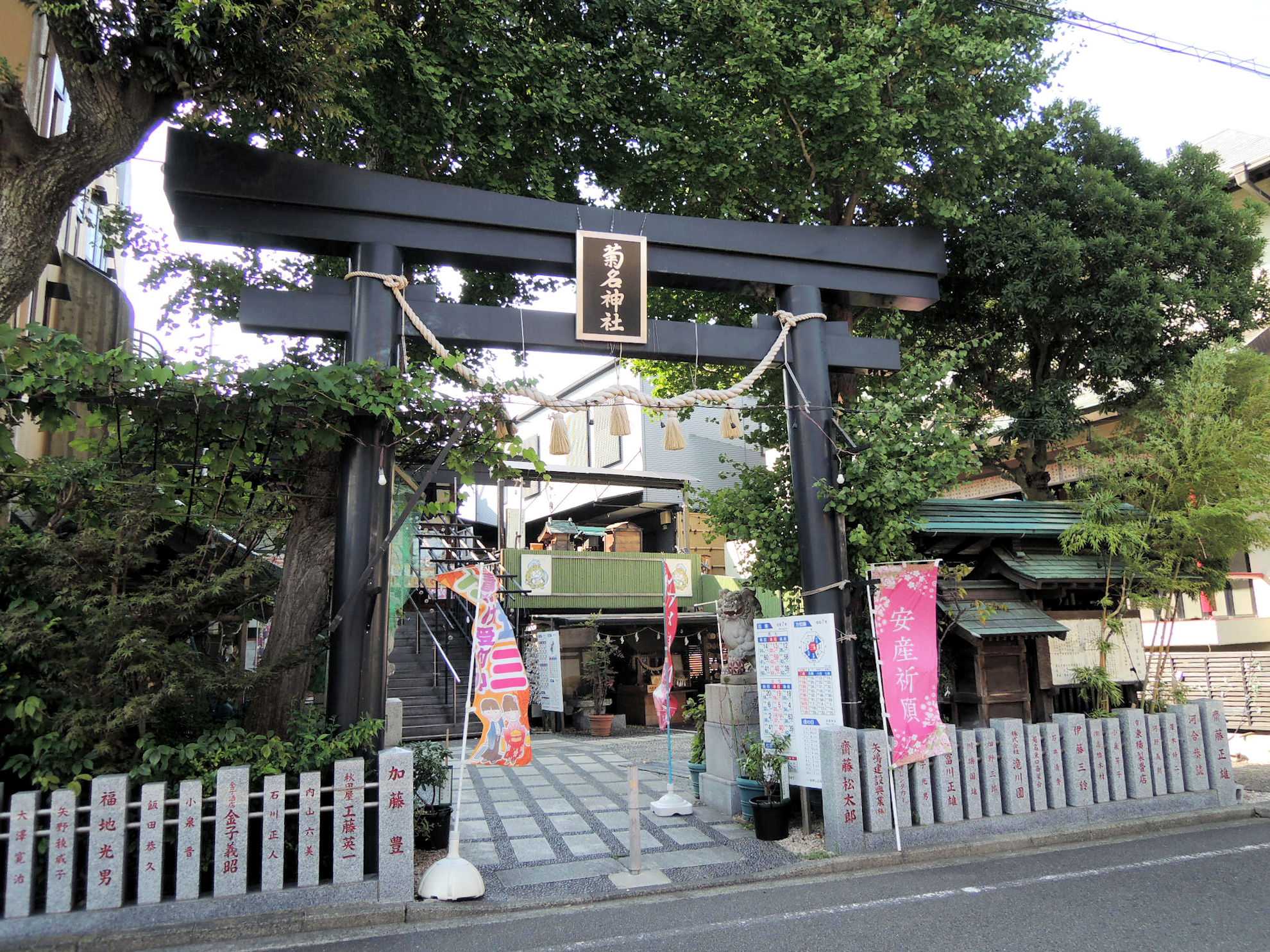 菊名神社は東急東横線・JR横浜線の菊名駅から徒歩3分というアクセス抜群の場所にある神社昭和10年に菊名地域に点在していた五つの神社(八幡神社・神明社・杉山神社・浅間神社・阿府神社)が合祀されて誕生したそうそのため主祭神の誉田別(ホムタワケ)命(応神天皇)の他にも天照皇大神、日本武尊木花咲耶姫命、武内宿禰命と多くの神様が祀られており、それぞれの神様が持つご利益も幅広く、厄除け・方位除け・安産・交通安全など、人生の節目に寄り添ってくれる神社です境内に入ってまず目を引くのが「がまんさま」の文字がまんさまとは寛政年間(1789〜1801年)に造られた手水鉢を支える鬼の石像御朱印帳やおみくじに登場する推しキャラなんですこちらががまんさま鬼とは思えない凛々しさですねさすがに本物は別にありこちらは新しく作られたものだそうこちらががまんさまおみくじ風水で言う四神のコスプレお衣装を身に着けてますねそして菊名神社の御朱印は月替りや限定デザインが豊富でコレクター魂をくすぐるラインナップこちらの社務所でいただきます御朱印は神事や御祈祷などがあるといただくまで時間がかかりますが、その間エアコンの効いた社務所内で待たさせていただけます暑い中休憩できて逆にありがたい中ではお神酒もいただけますっておちょこ一杯って書いてあったけどむっちゃ多いじゃんW隣のお茶は無料でいただけます多くの御朱印の中から選ぶのがタイヘン色んなイラストが楽しいこちらがもう一つの御朱印左は紙が貼られています下のがまんさまは四神の玄武のスタイル仮面ライダーのコブラ男ではありません(誰もそんな風に思ってないよ)基本情報所在地:神奈川県横浜市港北区菊名6-5-14受付時間:9:00〜17:00公式サイトはこちら