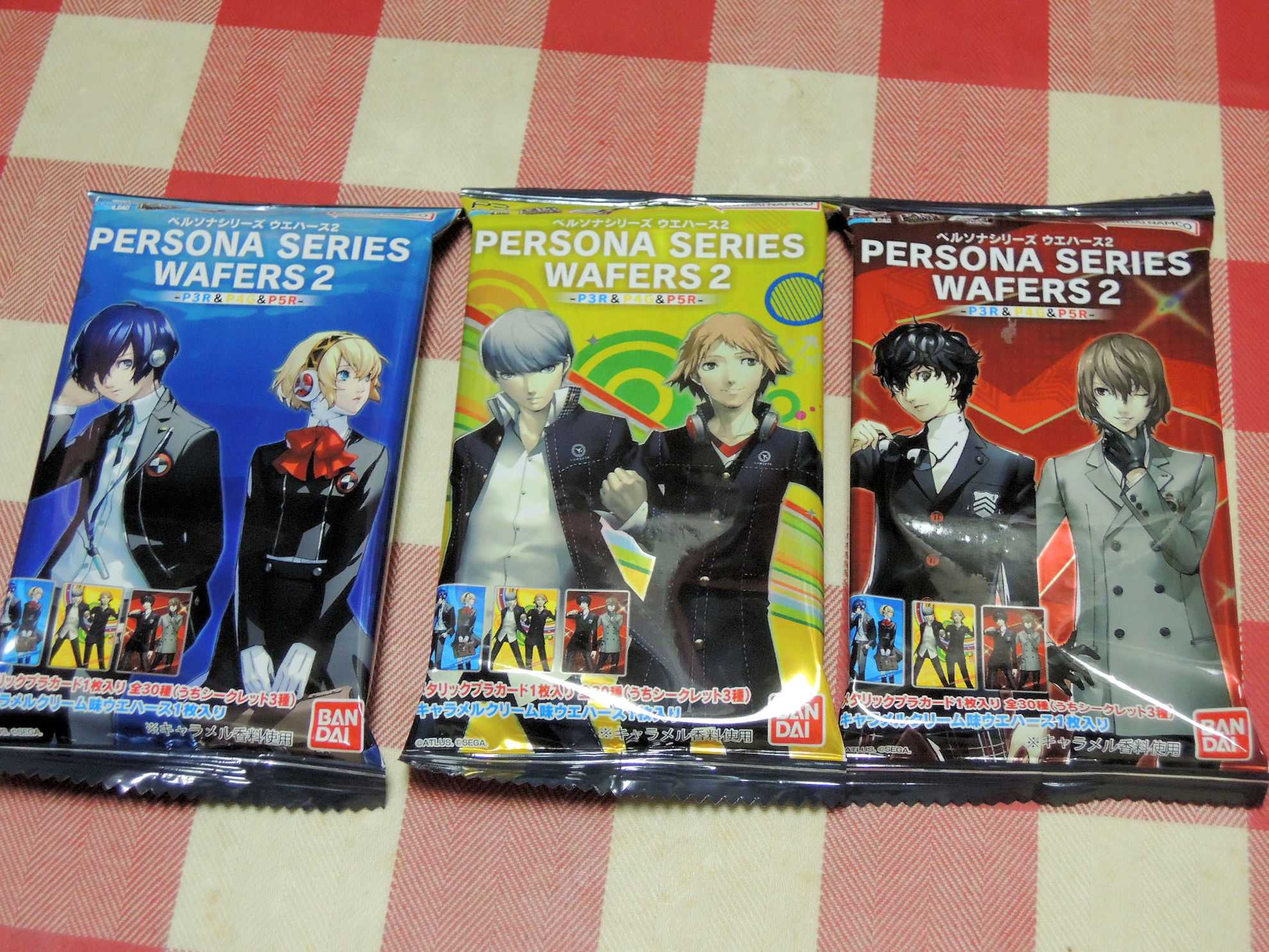 9月8日にペルソナシリーズのウェハースが発売されたと聞いて買ってみましたペルソナシリーズと言えば人類を襲う異世界からの侵略と戦いながら学園生活を謳歌し複数の女性をナンパしまくる(個人の感想です)人気RPGシリーズ私もファンなので早速買ってみました1個150円で3,4,5のパッケージがありますってか3が主人公とアイギスなのはわかるけど4,5が何で野郎なんだ!普通4は雪子かりせちーで5は双葉ちゃんか武見先生だろ!(偏見)もちろんオマケ付きで両面メタリックの高級感あるカードが全30種類封入されていますレアカードは3種類で豪華な箔押し仕様だそうですが主人公デザインなので不要!(コンプリートしないの?)パッケージのデザインが3だからと言って3のデザインが入っている訳ではないようですマーガレットとマリーいいね!全国のスーパー、コンビニの他アマゾンや楽天市場でも買えるそうです公式HPそれにしてもぺルソナ3リメイクしたんだから1,2もしないかなー1バッドエンドだったんだよねー
