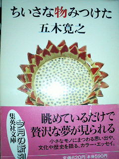 寝る前に、今日も本を紹介します☆『ちいさなものみつけた』 五木 寛之 定価620円 です。この本の帯部分を読むとわかると思いますが、文字どおり贅沢なコレクションが紹介されてます贅沢といってもギラギラした感じの物ではなくて、シンプルなものだとか骨董品などの上品な物。キャオとは趣向が全く違うんだけどナンカ惹かれるモノがありますエッセイも長すぎずおもしろいです。このペルシャの壺の話は不思議な感じがして、とても気に入ってますキャオも大好きな五勝手屋羊羹の話もあったこの本との出会いはHARDOFFでした☆しかも激安価格だった、、、、、でも値段以上の価値がこの本にはあると思います夜眠る前の読書にコノ本いかがですか?