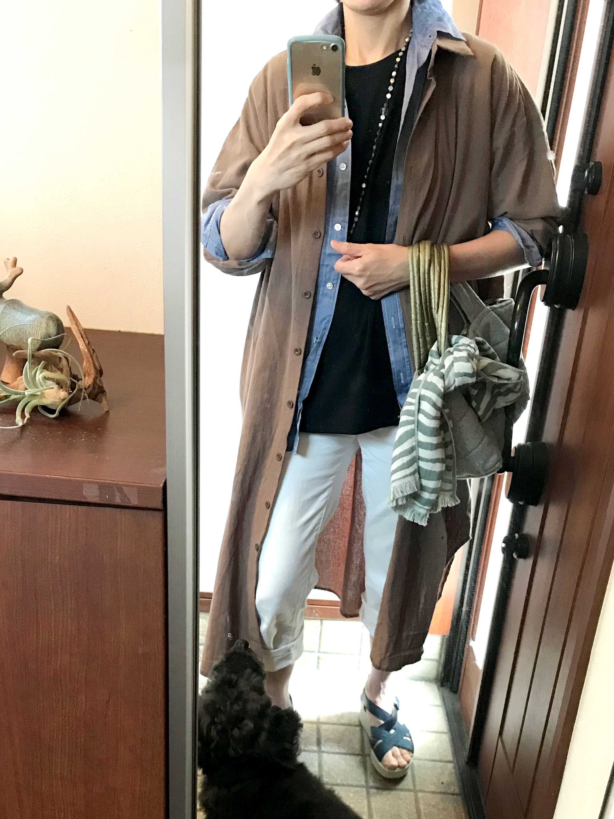 こんにちは。今日は子どもたちはお弁当いらない日だったので朝ゆっくり過ごすことができました楽天スーパーSALEで買ったコーヒー色のロングシャツが届いたのですが、開けてびっくり!だいぶイメージが違いました(^^;)茶色のロングシャツの商品写真のイメージではパリッとかっこよく着こなしているイメージだったのでそんな感じで着ようと思っていたのですが、実物は、綿100パーセントで生地はパリッとした感じではなくて柔らかく、コーヒー色よりだいぶ薄めで、つや消しな色合いでした💦でも、、転んでもタダでは起きません持っている服を色々組み合わせてみたらかなり好みのコーディネートが出来ました。かまってちゃんが足元に手持ちのブルーのシャツを重ね着したらアースカラーでまとまってすごく気に入っていますトートバッグは妹の手作り。中の生地がゴールドになっていてさりげなく茶系と合いました。ネックレスは、知り合いの作家さんから購入したものです。これは、中国紐を使った中国結びという手法を使ったアクセサリーで紐だから肌に優しいです。石たちも天然石です。3500円ぐらいだったと思います。在宅ワーク中なのですが先方の確認待ちで時間を持て余しているので破けたズボンを直していました。これは、昨年She inで買ったものなのですが、ある時気づいたらお尻のダミーポケットの中が破けていましたいつからだったんだろう〜?💦表からみたらキレイに直りました針仕事ってなんか落ち着きます。お読みいただきありがとうございました【48h限定★2,580円→2,380円】ロングシャツワンピ シャツワンピース 羽織 春 秋 冬 レディース 長袖 ロングワンピース シャツワンピ リネン 羽織 ロング ワンピース 大きいサイズ きれいめ ミモレ 無地 体型カバー ロングワンピース 秋 夏 送料無料ゆるてろフレンチスリーブワイドカットソー レディース トップス 夏 春 タンクトップ インナー カジュアル 涼しい ロング丈 丸首 薄手 柔らか ゆったり 体型カバー 着痩せ 無地 シンプル オフィス 伸縮性 メール便1,980円インナーはこちらの黒です。