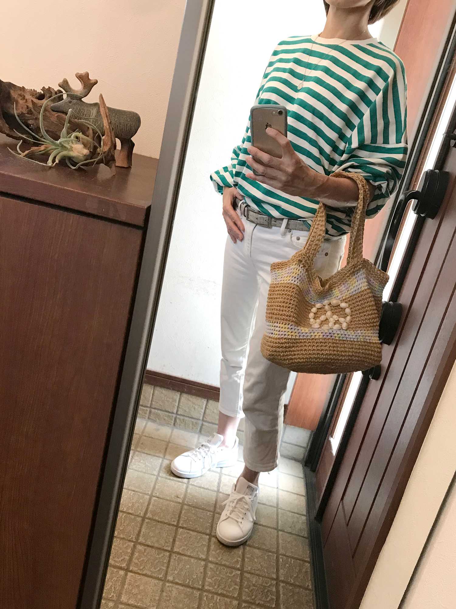 こんにちは今日はいい天気です。シーツなどの大物をたくさん洗濯しました♫楽天スーパーSALEで買ったものが続々届いています昨日はボーダーのトップスが届きました。アラフィフのボーダーって、下手すると部屋着っぽくなったりこどもっぽくなったりするのですごく難しいいろいろ試して、最終的にこの2つのコーディネートに落ち着きました。コーデ初心者なのでとりあえず無難な感じに落ち着いたのかな、とスニーカーと合わせてみました。バッグはお友達の手作りです。なんとなくシルバーアクセサリーを合わせてみました。こっちはデニムとサンダル。アクセサリーはゴールドを合わせてみました。以前三井アウトレットパークで1600円ぐらいで買いました。このトップスですが、安いのに着心地、肌触りはすごくいいです。デザインもとても良くて気に入りました無地もあったので、使い回ししやすい無地を次回のセールの時にリピ買いしたいなぁ〜と思います。送料無料★ バルーン袖 ロンT ライトスウェット レディース 綿100% コットン ドロップショルダー バルーンスリーブ ボーダー 無地 ロンt カットソー ぽわん袖 トップス Tシャツ 長袖 ゆったり 大きいサイズ 柄 スエット 春 メール便 2206ss楽天で購入