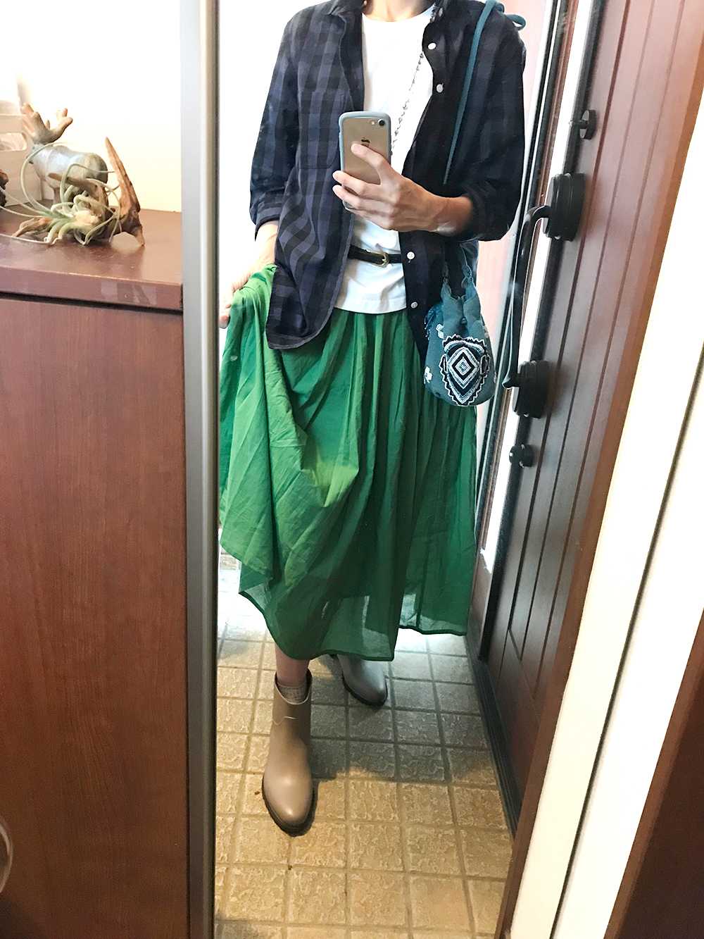 こんにちは楽天スーパーSALEで購入した洋服がまたまた届きました。顔馴染みの佐川さん、、、たくさん買っちゃって忙しくさせてホントすんませんm(_ _)m昨日は、緑のロングスカート、カットソー白カットソー黒茶色のロングシャツワンピが届きました。どれも安くてありがたかったのですが、もう49歳。やはり若い頃に比べて肌艶が衰えてきているので、安い服を高見せしないとルームウェアに見えてしまったりだらしなくなってしまうんです。昨晩、コーディネートを考えてその結果このようになりました今回楽天で購入したスカートとカットソーに、息子が中学生の時に来ていたシャツと3年前に楽天で購入したレインブーツを合わせました。【一部予約6/21頃発送】【メール便不可】着映え度120%!鮮やかカラー コットンボイル スカート 綿100% フレア ロング丈 マキシ丈 22ss1,690円(税込)私は、short丈を購入しました。ちなみに身長は161センチです。このロングスカート、安くて、ふんわり可愛くてコスパ良しなのですが、残念な点が1つ。。それは、お尻の大きさやウェストの太さが強調されること!!ギャザーが多いからだと思うのですが、腰の辺りがもったりするんです。私骨盤がデカくて、お腹も出ているので(こう見えてウェストは68センチあります)着用した時、すごく強調されました(涙)なので、シャツやカットソーはインせずに外に出して上からベルトをして引き締め効果を狙いました。【メール便対応B】【一部予約】【送料無料】ピグメント加工 フレンチスリーブ Tシャツ レディース コットン クルーネック サイドスリット ヘムライン 春 夏1,890円(税込)カットソーはオフホワイトを購入しました。イタリア発!PateranazziNEVADAレインブーツ ショートブーツ ブラック ネイビー グレー ベージュ ブラウン カーキ レッド インポート 雨靴 長靴 22.0 23.0 24.0 25.0 PVCビニールシューズ 4167695 PATERNAZZI8,400円(税込)このレインブーツは3年前に購入したんだけど値上がりしてました。当時は7,700円でした。趣味で結構走るスポーツをしていて膝や股関節にガタが来ているので靴選びはとても慎重にしているのですが、このレインブーツは長時間歩いても足に負担がかからず痛くならないし、履き心地が良いです。息子のお下がり。成長して着られなくなりました。あんまり着なかったらしくて、割と綺麗だったから私が着ていますそして次はさらにカジュアルコーデ。このパーカーも息子のお下がり倹約家だからなんでも活用してます💰このトートバッグは数年前に購入したもので後で調べたらanti ballistic (アンティバルリスティック)というブランドのものでした。4,000円ぐらいでした。最後は大人コーデ。本当は、スポーティなスタイルやカジュアルが大好きなのですが、これが一番年相応なスタイルなのでしょうね。ちなみにこの黒のカットソーはこちらで買ったのですが、ゆるてろフレンチスリーブワイドカットソー レディース トップス 夏 春 タンクトップ インナー カジュアル 涼しい ロング丈 丸首 薄手 柔らか ゆったり 体型カバー 着痩せ 無地 シンプル オフィス 伸縮性 メール便袖がほぼなく、袖口も開いていてスースーします。涼しくていいのでしょうけど、アラフィフは冷えに弱いのでストールを首に巻きましたちなみに肌触りはすごく良いです。ストールは25年?ぐらい前に父からプレゼントでもらったものです。コーディネートってホント難しいです💦自分のコーデを写真に撮るととても勉強になります!お読みいただきありがとうございました