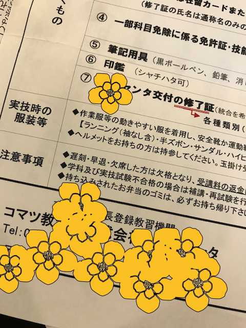 本日2個目の記事です〜週末の草刈り&整地作業の筋肉痛が1日遅れで火曜日にやってきたのですが、良くなってきた矢先、昨日は友達とバドの練習を2時間強ほどやりまして、また筋肉痛9月に試合に出るのに真夏全然練習できてなくてすっかり体力も落ちてしまって、毎日ランニングぐらいはしておかないとなぁ〜思いつつも、暑いしダラダラしたくなるし、つい楽な方へ気持ちがいっちゃって、結局数日しか続かず毎日が過ぎていきますそして今週末2日間はユンボの資格を取るため重機専門の教習所へ行きます。持ち物等確認するため、受講票をチェック。コース:「小型車両系建設機械(整地、運搬、積み込み用及び採掘用)の運転の業務13H」来所時間:8:00服装:作業着等の動きやすい服を着用し、安全靴か運動靴を、、、作業着はさすがに持ってないので、チノパンにスニーカーで行くしかないわね。ヘルメットは貸してくれるのかー、臭く無いかな作業着のあんちゃんばっかりで、多分浮いちゃうだろなぁ。そして、集合8:00は早いしのんびりな週末は今週も無いものと思った方が良さそう。そして、素敵アラフィフライフをブログで書きたいと思っていたけど、どんどん遠のいています