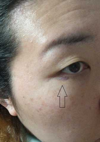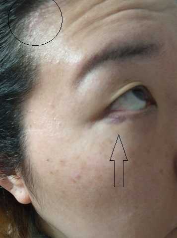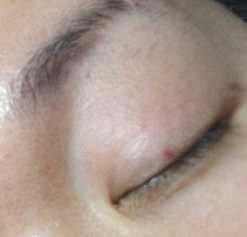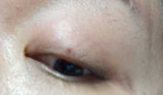 左目の瞼は最初、ものもらいか、ニキビか?と思ってたら、どうやら昨日つけられた傷っぽい。というかいきなりニキビできる?と思ったら地面で擦ったのでばい菌か?#5月20日、20時20分前後、買い物行こうと思ったら大澤に襲われたときのケガの画像