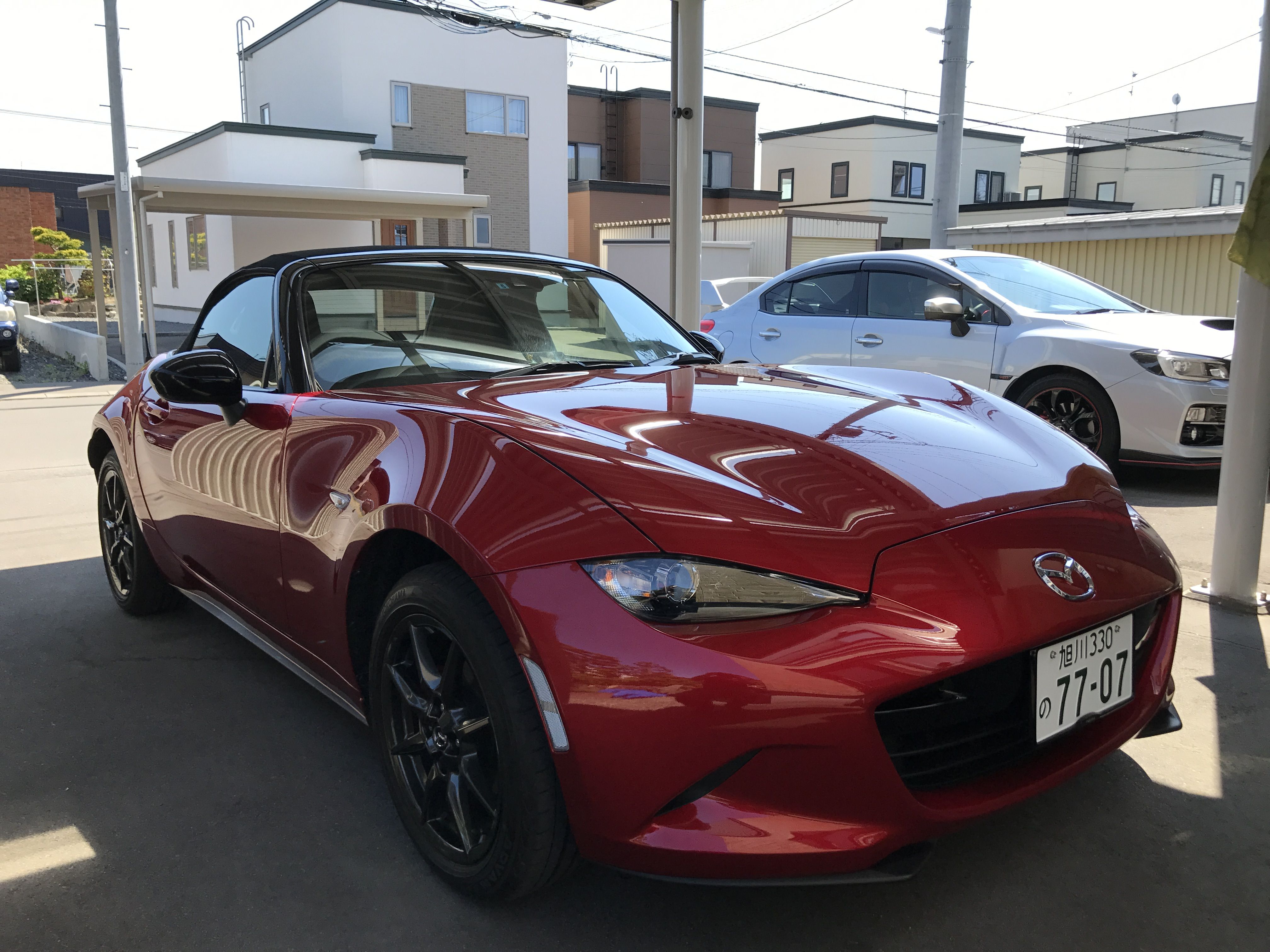 父の日のプレゼントに労力で奉仕!キー借りてイグニッションオン!よいしょ!よいしょ!海はよ〜海はよ〜っ、でっかい海はよロードスターから、おやじの海。(^◇^)すげな〜76歳が最後の車だ好きにさせろ!って買って来たやつです。