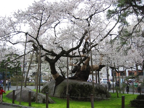 今日は田んぼに肥料散布して田起こしの準備。後は母ちゃんとプチ 花見してきました。ついに桜が咲き満開状態になりましたよ。この画像を見て変だと思いませんか?よく見るとわかりますよ。ここは盛岡の桜の名所で・・石割り桜です。大きな石を割って桜の木が生長したのか?石の割れ目に桜を植えたのかは不明です?