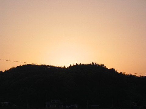 本日3:30起床!田んぼに向かい、苗を畦道に運び・・そして田植え機を取りに行き・・田植え開始!!予定通りどうにか終了しました。 本日の・・教訓 やる気さえあれば同にでもなる。もうすぐ朝日が出そうでした。田植えが終了しました。