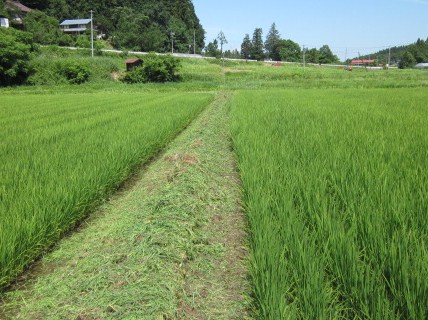 台風が過ぎてから急に寒くなり、もう秋か?のような天気でしたが、ここ数日は暑さがぶり返してきました。田んぼの草刈りをしてみました。ん~すっきり!今田んぼを中干しをしていますが、天気が良かったのでひび割れするくらい良く乾いてくれました。また水を入れて一杯になったら、イモチ病の防除のため薬を撒く予定です。