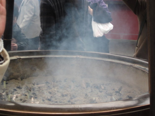 ここ 浅草寺て言うんですね!線香の煙を手でパタパタやって体につけました。 きっと悪いところが治る?頭が良くなる?きっといいことがあるはず。大変大きくりっぱなお寺さんです。また来るよ