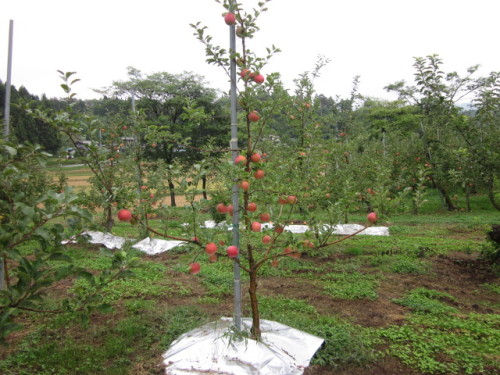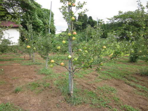 今のところリンゴは順調に育っていますよ。 自分が手入れをする様になってから、一番出来がいいと思います。(一応、勉強しながら栽培しておりましたので)でもこんなに猛暑だと、一昨年のニの前ですか? 来年は不作だったりしてこんな思いをしています。少し赤く色ずいてきましたよ。この木は・・シナノスィ―トです。