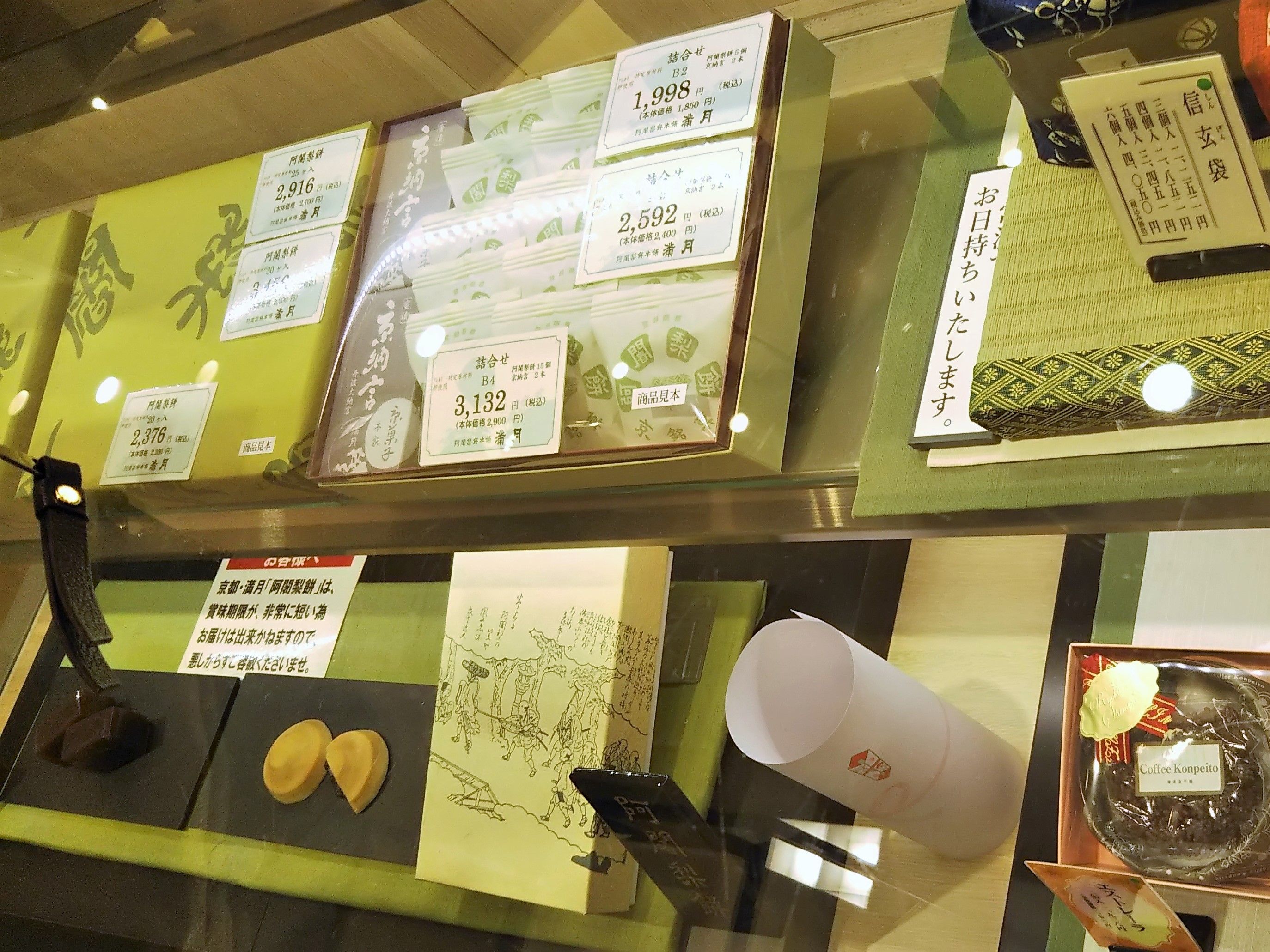 「阪急うめだ本店」の『満月』は、和菓子売場のエレベーター沿いにある、 「全国銘菓撰」 の中にあります。