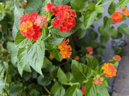 ランタナ オレンジ色が段々赤くなって、もっと濃い赤になる。