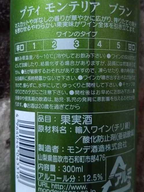 白ワイン 缶ワイン モンデ酒造プティモンテリア ブラン(白ワイン) 単品300ml (4964044043316)