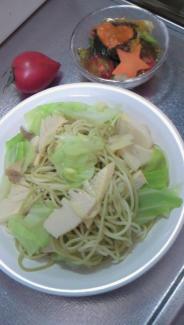 今が旬のタケノコと春キャベツを使ったザーサイ入りタケノコパスタとこの前料理教室で作った冷菜の土佐酢ジュレソースがけを作りましたちょっと淡泊すぎて物足りなかったらしく、母はパスタに納豆と生卵をのせて食べてました