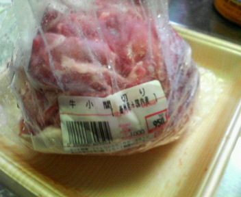 昨日の晩御飯は牛丼。・・半年は食べてなかったような・・。我が家は牛肉使用率が低い上に、暑い時期は丼物を食べる気分にならないし。寒くなってきた所へタイミングよくミート将軍さんの和牛入り牛小間切れ が届きました。1キロ950円だったので安い~と思って試しに、オークションで7円落札した飛騨牛入りミンチカツに同梱してもらいました。届いた時はこんな塊で冷凍です。(解凍に時間かかりますね・・そこはちょっと残念かも)牛小間だし、甘辛く炊いて肉うどん用のお肉にしようかなと思っていたのですが、解凍してみたら嬉しい事に、思った以上に使えるお肉でした~なので、牛丼作ろうかな~と思い立ち。他は、小鯵の大袋198円をスーパーで購入したのでその中でちょっと大きめを3枚下ろしにして酒と薄口醤油に漬けておいた物に粉を振って大葉で挟みフライパンで焼きました。ポン酢でさっぱりと頂きます。蒲焼風の味付けでもいいんですが、牛丼と味が似たような感じになりそうだったので変更。三枚下ろししたあとの骨の周りの身もそぎ集めて、下の子用に。小骨をチマチマ抜くのが面倒なんだけど、13日に夜中まであった楽天オークマラソンの合間のいい内職になりました残りの小鯵は南蛮漬けにしました。汁物は豚汁(大根・人参・さつま芋・白ねぎ・こんにゃく・豚肉)です。今日、冷蔵庫の中の牛肉の塊が小分けできる位に解凍されたので一度に使う分ずつ分けました。シャブシャブ用位の薄切りでけっこう形もしっかりしてるものが殆ど。コレで、グラム95円は安い~鼻歌が出ちゃいます~筋っぽくも無いし薄切りで柔らかく子供でも食べやすいお肉だし、コレだけ形がしっかりしてたら使い道も多いですよね。(大きさが分かりやすいようにケーキ用フォークを置いてみました)昨日牛丼に使った残りですが、12,3枚入りの小分けが4つと、ちょっと小さ目や破れてるホントの小間が200グラム弱。脂身は比較的少なめなのであっさりですが味は良いですよ。私が買ったときより若干値上がりしたようですが、それでも安いです。お勧めです最後に、今日19時から1時間だけのタイムセールのご紹介。このカネスさんの訳あり車海老。折れたりしてるのは炒め物やグラタンなんかに使えるし、ちゃんとした形のはもちろん天麩羅やエビフライ。チリソースもいいですよね~。オークション形式になってますが、1撃価格で入札しちゃえば普通に購入するのとまったく同じです。ちなみに同梱にはここの杏仁豆腐お勧めですよ~。メチャ美味しいです。