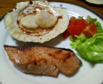 久々、晩御飯の紹介です~。おかせいさんのオークションで落札の帆立が届いたので早速、ホタテのお刺身とバター焼きに。あいにく、お腹風邪から回復したばかりでどっさり貝を食べるのも負担が大きいかも。。と思って量は控えめです。鮭のムニエルとホタテのオーブン焼き。ホタテのお刺身、こんにゃくとちくわのキンピラ風。ホタテ刺身は冷凍物にあるネチャッとした食感ではなくてまさにプリップリ。新鮮だとやっぱり違います。今日は残りでホタテフライをする予定です。ホタテのヒモはどうやって食べようかな~。美味しいですよね、ヒモ。おかせいさんでは、このホタテのオークションが連続開催。お安く購入できるチャンス!おかせいのオークション全然関係無いですが、ムニエルにドレッシングかけて食べたら美味しいんですよ~。さっぱりしてて。かけたのは日本食研の「空と大地のドレッシング きざみ玉ねぎ」です。粒々の玉ねぎがどっさり入ってて酸味のあるドレッシングです。(普通にスーパーで購入)ノンオイル青じそで食べるのも好きなんですけど、これもイケました!ちょっとホットサラダっぽい感じでやとの相性もいいですちなみにダーリンは、ムニエルでもお醤油です。下の子も鮭フレークにしてご飯に混ぜて醤油垂らして食べてました。(オシャレな夕食のはずが・・・)