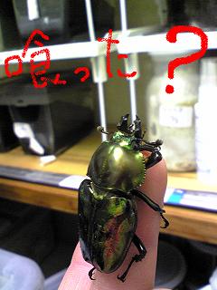 今日の子育て 今日は家内が職場研修で 遅くなるとのことで 夕飯は、子どもたちと3人で 私の実家へ・・・ 子どもたちの好きな、 カレーライスでした。 私も大好きですが。 帰宅後も大忙し・・・ 何故か、家事が多く残っているような・・・ 一通りこなし、朝食準備も完了。 怪しげな、スープも作っちゃいました。 ふと気付くと長女が寝てしまいました。 『しまった!』 結局、家内の帰りを待って 入浴させ、就寝しました。今日の飼育 上記のような状況で 今日は、ブリのみ この♂も長男の所有虫です。 そう、くわがた横丁の 福袋に入っていたアルキデスです。 私の飼育していた子は、 何匹もの♀を殺し、他界しました。 この♀は、唯一の生き残りです。 今回は長歯型ですね。 今度は穏やかそうな♂なので 上手くいくと良いのですが・・・PS タイギラファカップルも 一夜明けて・・・ 仲良く、ゼリー食べてました。 と言う事は・・・だな!