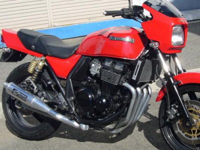 バイクスター和歌山さんにカワサキ ZRX400の中古バイクが入荷しております。ちなみに、このアルミマフラーは音量を手元で調節できるマフラーらしい。最近はこういうカスタムパーツもあるんやね! 初めて知りました。ハーレーなんかは爆音マフラーも多いからね、パパさんバイカーはご近所の事も考えるし、優れものかも!高速や郊外では全開!ストレス解消してください。和歌山のバイク探しもグッドカー!