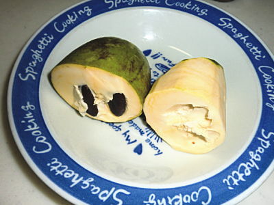 我が家の裏にはジャングルの様な畑が有ります。また変なものが生っております、・・ポポの実味ですか? マンゴーのような?少しドリアンも感じる様な?完熟までいかないで採ったのでイマイチでした。今年は和歌山も熱帯でしたね・・・グッドカー