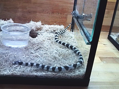 蛇にょろにょろ、みにょろにょろ、って一匹ですが。ペットショップで思わず立ち止まりました、爬虫類って意外とファンが多いそうな、なんとなく腕に巻き付けたい気持ちは、分かりますが、名前をつけて呼ぶのには、ちょっと微妙?犬ネコのほうが良いです・・・グッドカー