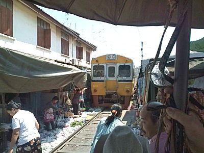 タイ、バンコクの珍百景です。なんと市場の中を普通に電車が通る、と言うより電車が通るのに、市場を出している、それも本当にすれすれにメクロン線というらしいが、商魂たくましい人たちです。他の方のユーチューブですが、こんな感じ、お借りします。雑踏、大好きです・・・グッドカー