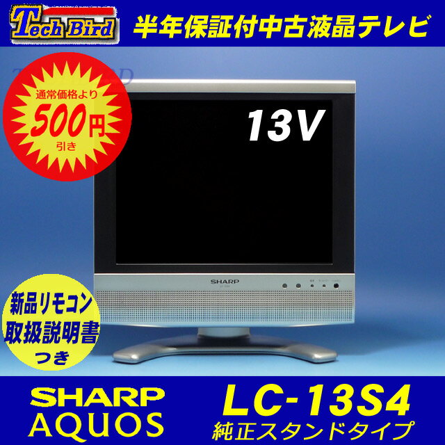 【送料無料】シャープAQUOS(アクオス)13V型液晶テレビ(アナログ中古テレビ)[LC-13S4-S]純正スタンド・新品リモコン・取扱説明書つき 在庫100台以上有【3月特売】【中古】【smtb-KD】【RCPmar4】