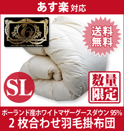 【送料無料】【あす楽対応】日本製TC【2枚合せ】羽毛掛け布団(ポーランド産ホワイトマザーグースダウン95%)シングルロング/参考上代262500円の品が衝撃の88%OFF!!プレミアムゴールドラベル付き/安心の日本製/羽毛掛ふとん【数量限定】