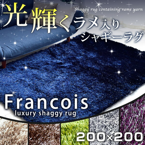 【送料無料/即納】 シャギーラグ キラキラ ラメ入り 40ミリ ロングパイル ラグ 高密度 フランソワ 200×200 ラグ カーペット シルバー グリーン ブラウン 絨毯 じゅうたん ホットカーペット対応 ラグマット 正方形 【楽ギフ_のし】