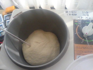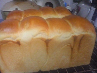 半年以上ぶりに更新します(笑)最近は購入品の中にあるニーダーを使ってパンを作っています。今回は酵母から自分で作る事にしました。今回使った器具はニーダーとヨーグルティアで、どちらも楽天で購入しています。ついでに参考にした酵母の本もです♪しかし、最初は大失敗をしてしまい、小麦粉3kgを無駄にしてしまいました。6月5日に近所で頂いた枇杷を使ってヨーグルティアにセットして1週間、とても良い酵母液が出来ました。そして酵母を起こすのは小麦粉と酵母液を混ぜ倍くらいまで膨らませ、それを3度ほど繰り返すのです。問題はここからでした。小麦粉を混ぜ、水を加えるのですが、酵母にすでに入っている水分を計算から外して混ぜたのです。まあ、膨らまない、すっぱい、苦い、不味い・・・最悪の結果に・・・6月27日に今度は比較的作りやすいとされている、干葡萄を使って酵母液を作る準備をヨーグルティアでしました。29日には干葡萄もいい感じになり、24時頃、酵母液500g強力粉500gをニーダーで混ざるまで2~3分練りました。そして朝まで放置♪ 30日は朝から小麦粉500g、水100cc程、スキムミルク、バター、砂糖、塩をポット内に入れ、フタをして15分練りました。この時に元種の水分も計算に入れ水は少なめです。その後、一次発酵は練り終わると同時に普段の大きさに膨らむまで放置しました。(約4時間)今回は時間はかかっていますが上手く膨らみました。その後、分割しベンチタイム1時間。発酵の力が弱いので本当はもう少し長めに時間を取りたいのですが、二次発酵で頑張ってもらうために終わりました。二次発酵は5時間。これはかなり考えました。3時間たっても中々膨らまないので、どうしようかと・・・。しかし3時間を過ぎたあたりから、膨らみだしたので期待をし、その後2時間頑張りました。普段くらいに膨らんでくれたので、水溶き卵を塗り、焼きは普段通り150℃15分、180℃20分で終了です。いつもの材料、膨らみなのに、サクサク感ではなく、もっちり歯応え抜群、これぞ天然酵母と言う食パンになりました。時間がかなりかかりますが、本当に美味しい食パンになりました。今回の時間は前種作りから焼き上がりまで約18時間かかっていますが天然酵母という事を考慮すると妥当な時間だと思います。ネット等で調べてみると、皆さん比較的早く作っておられます。でもうちでは、生地のしなやかさを求めているので、過発酵にならない程度にしっかり膨らませてみました。ドライイーストから始まり、白神こだま酵母、天然星野丹沢酵母、とうとう自分でオリジナルの酵母で作るところまで8ヶ月でこれました。次回からは季節の果物を使ってどんどんチャレンジしていきたいと思います。もし酵母から作られている方で美味しい酵母を知っている方がおられてたら是非教えて下さい。写真は今回のものではなく、こだま白神酵母の食パンですが見た目は同じような感じです。